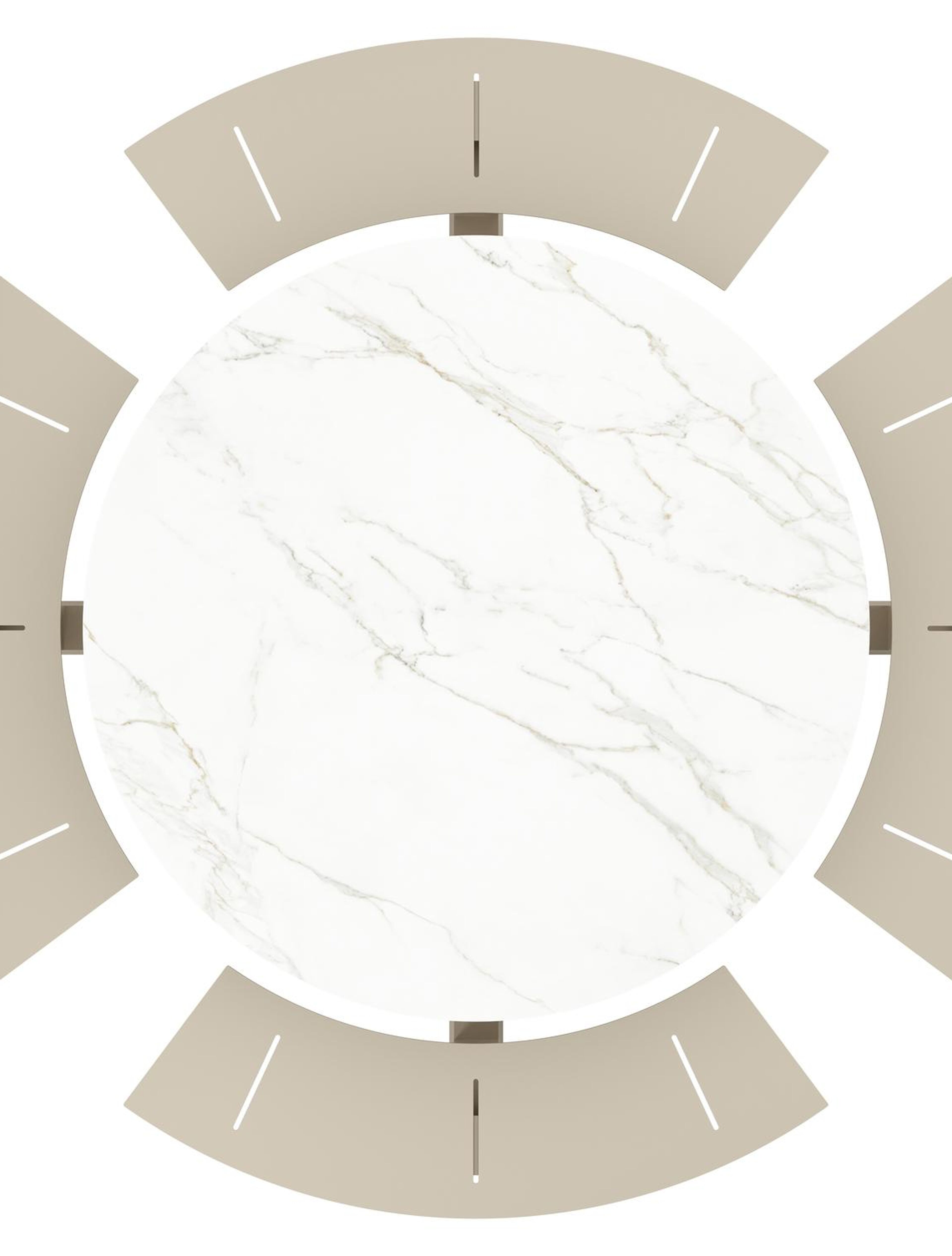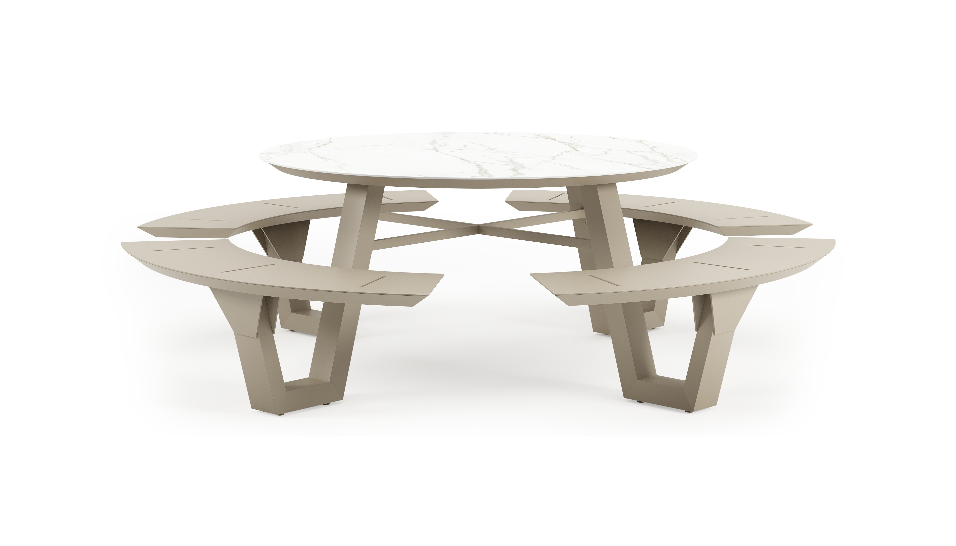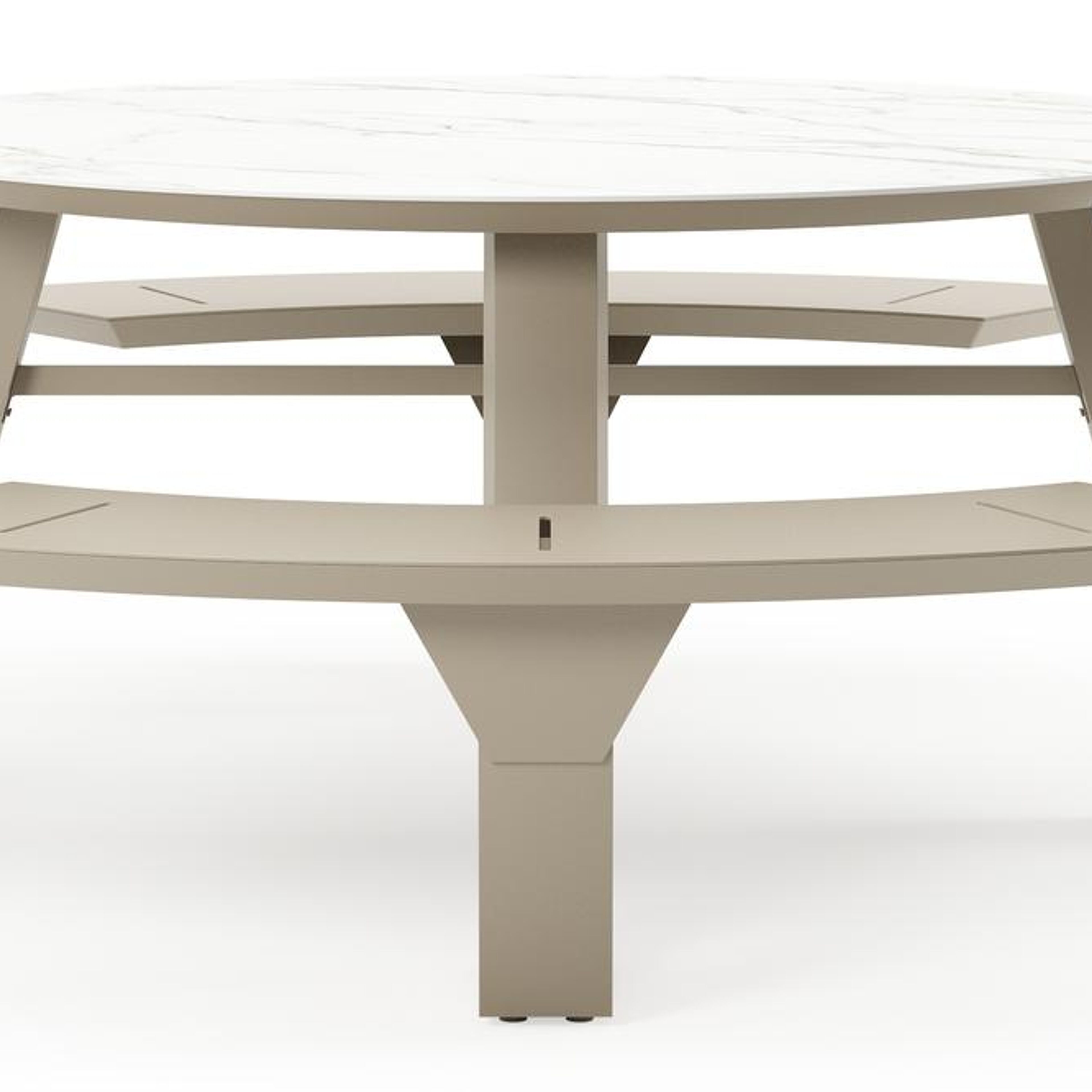 Rondino picknicktafel rond in beige aluminium en volkeramiek Calacatta - Dia. 148 x H 71.5 cm | Exterioo tuinmeubelen