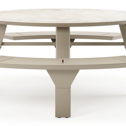 Rondino picknicktafel in beige aluminium en volkeramiek Rapolano - Dia. 148 cm | Exterioo
