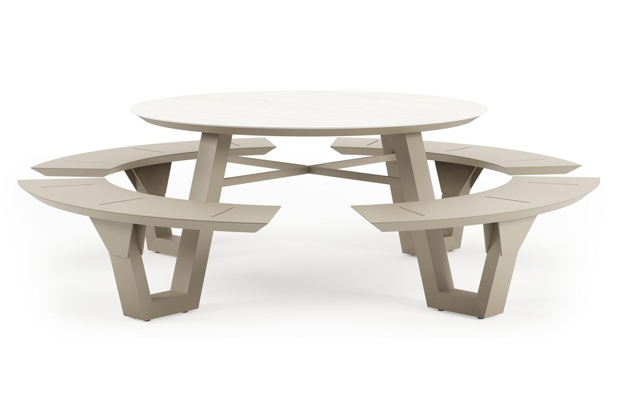 Rondino picknicktafel in beige aluminium en volkeramiek Calista - Dia. 148 cm | Exterioo