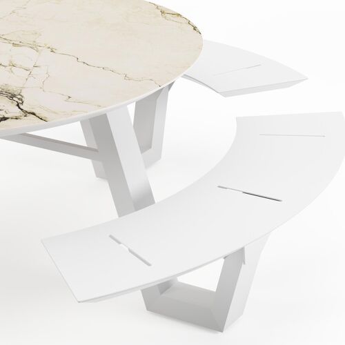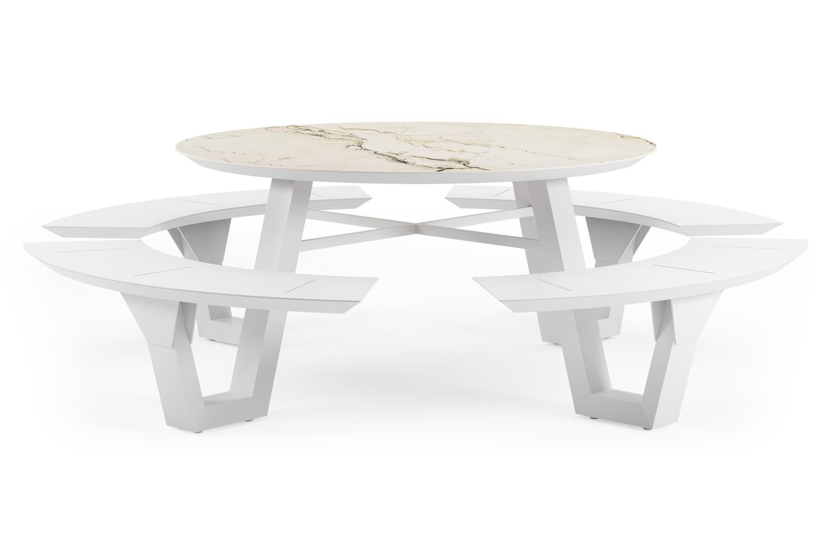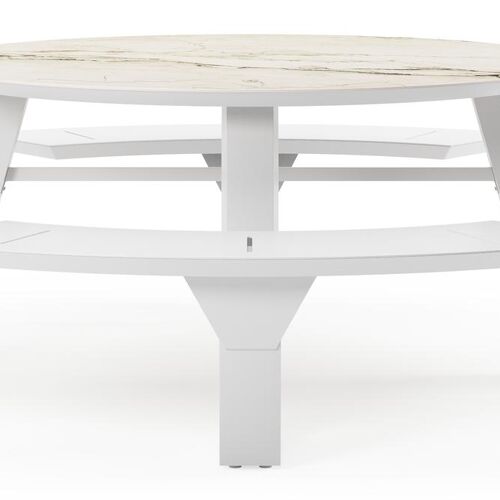 Rondino picknicktafel in wit aluminium en volkeramiek colorado dunes tafelblad - Dia. 148 x H 71.5 cm | Exterioo