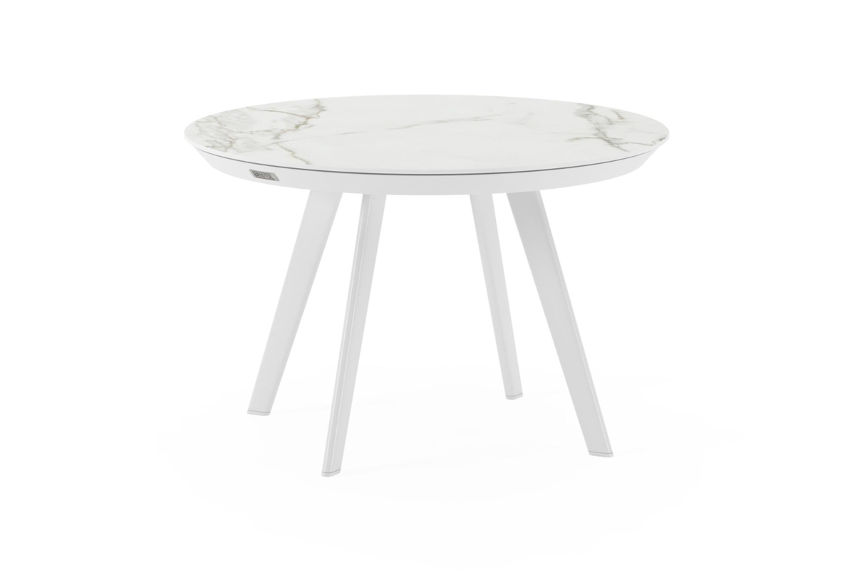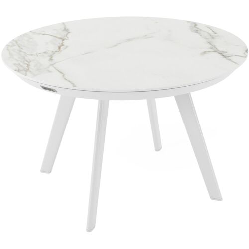 Rondo loungetafel in wit aluminium en calacatta volkeramiek - Dia. 65 X H 40 cm | Exterioo
