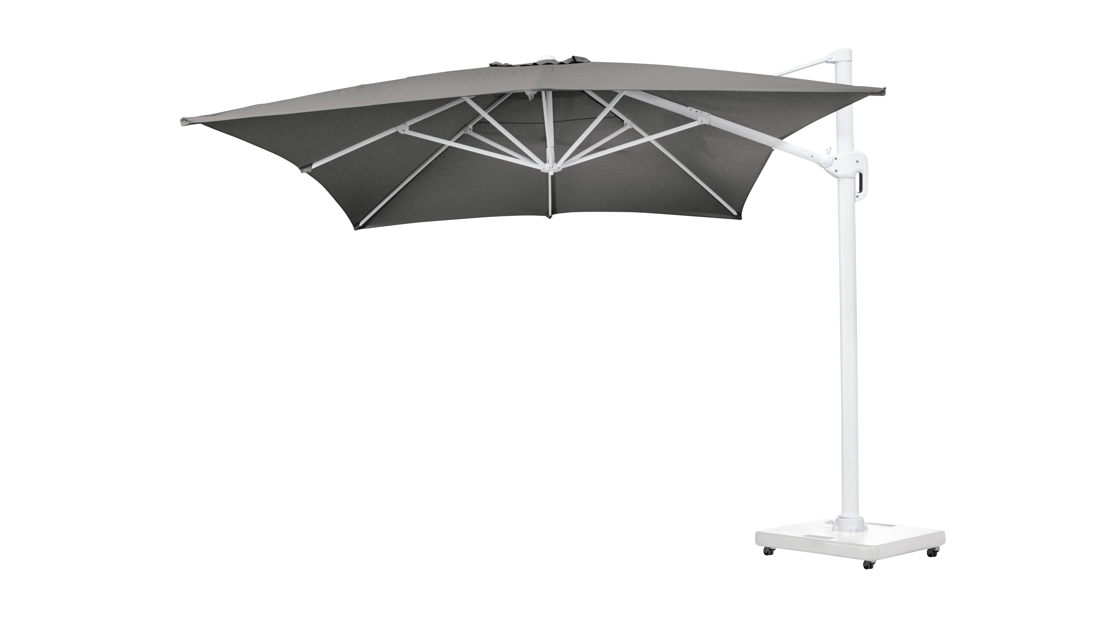 De Rufina zweefparasol is een zeer gebruiksvriendelijke parasol. Het is een zweefparasol waardoor de mast niet in de weg staat. De parasol is makkelijk open te draaien via de hendel. Bovendien is hij ook in hoogte verstelbaar en beschikt de Rufina parasol ook over een tilt-functie. Deze functie biedt de mogelijkheid om de parasol te kantelen, zodat je de stand kunt aanpassen naar de positie van de zon.