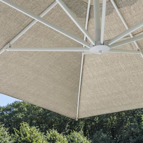 Rufina zweefparasol in wit aluminium met chartres pewter all weather sunbrella® luxe parasoldoek - L1: 300 x L2: 400 cm (zonder voet) | Exterioo