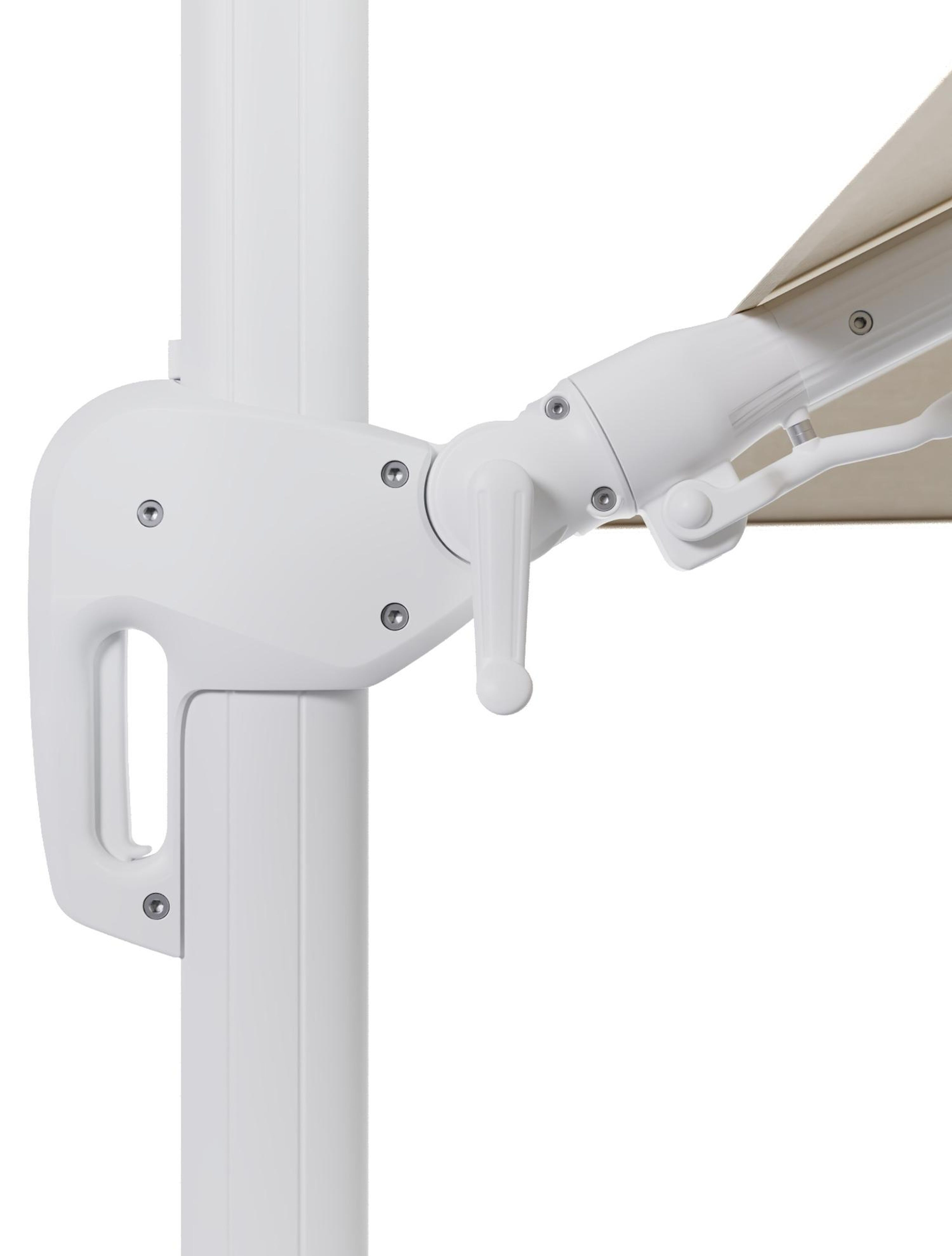 Het frame van de mast is gemaakt uit roestvrij aluminium. Het oppervlak is glad afgewerkt waardoor het geen vuil aantrekt en onderhoudsvriendelijk is. De poedercoating zorgt voor de UV- en weerbestendigheid van je meubel.