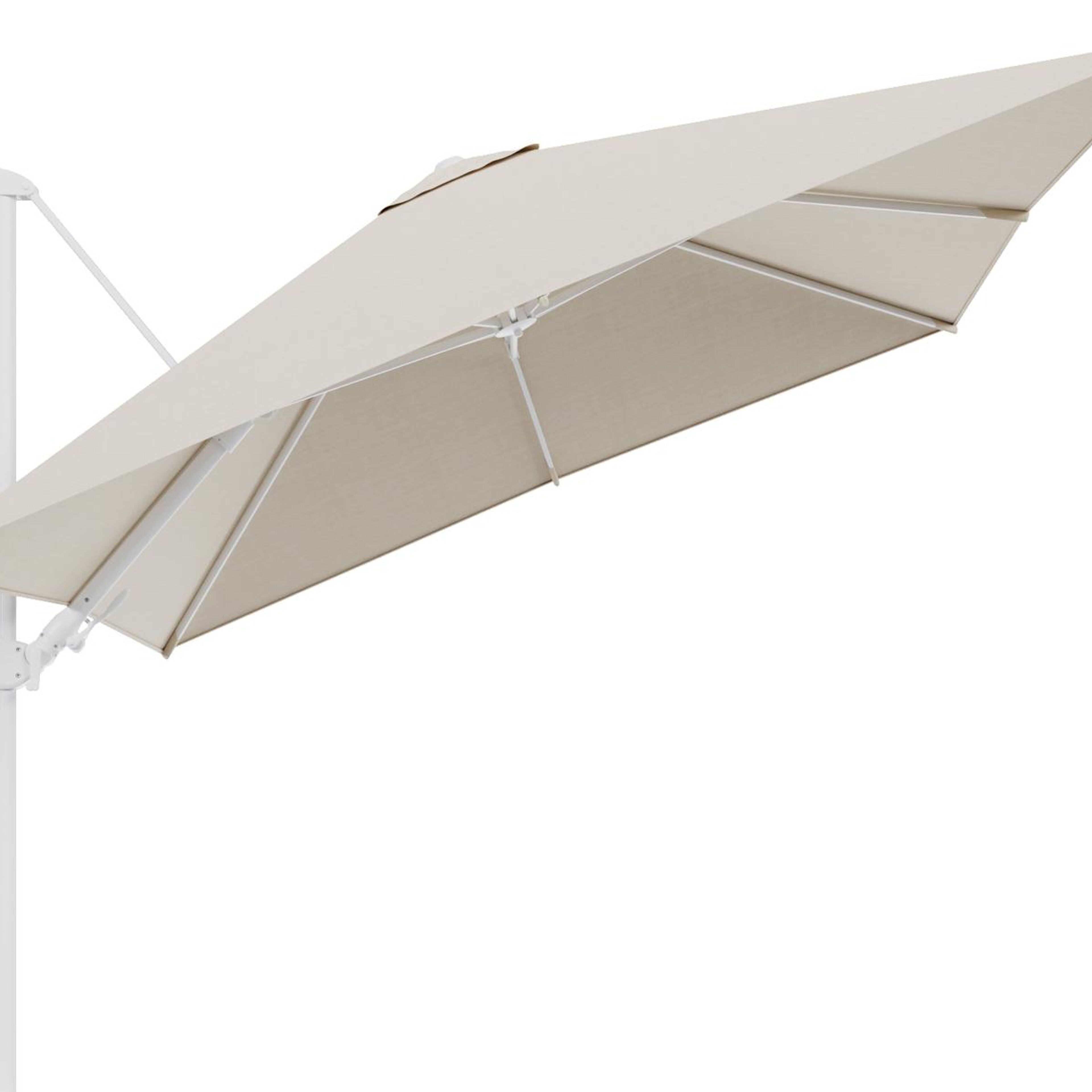 De Sunbrella® Premium stof is geweven met een vezel die tot in de kern gekleurd is. Daardoor is de parasoldoek kleurvast en bestand tegen felle zonnestralen. Daarnaast is de stof ook waterafstotend, slijtvast, vuilafstotend en vlekbestendig. Dit materiaal wordt bijvoorbeeld ook gebruikt bij het dak van cabrio's.