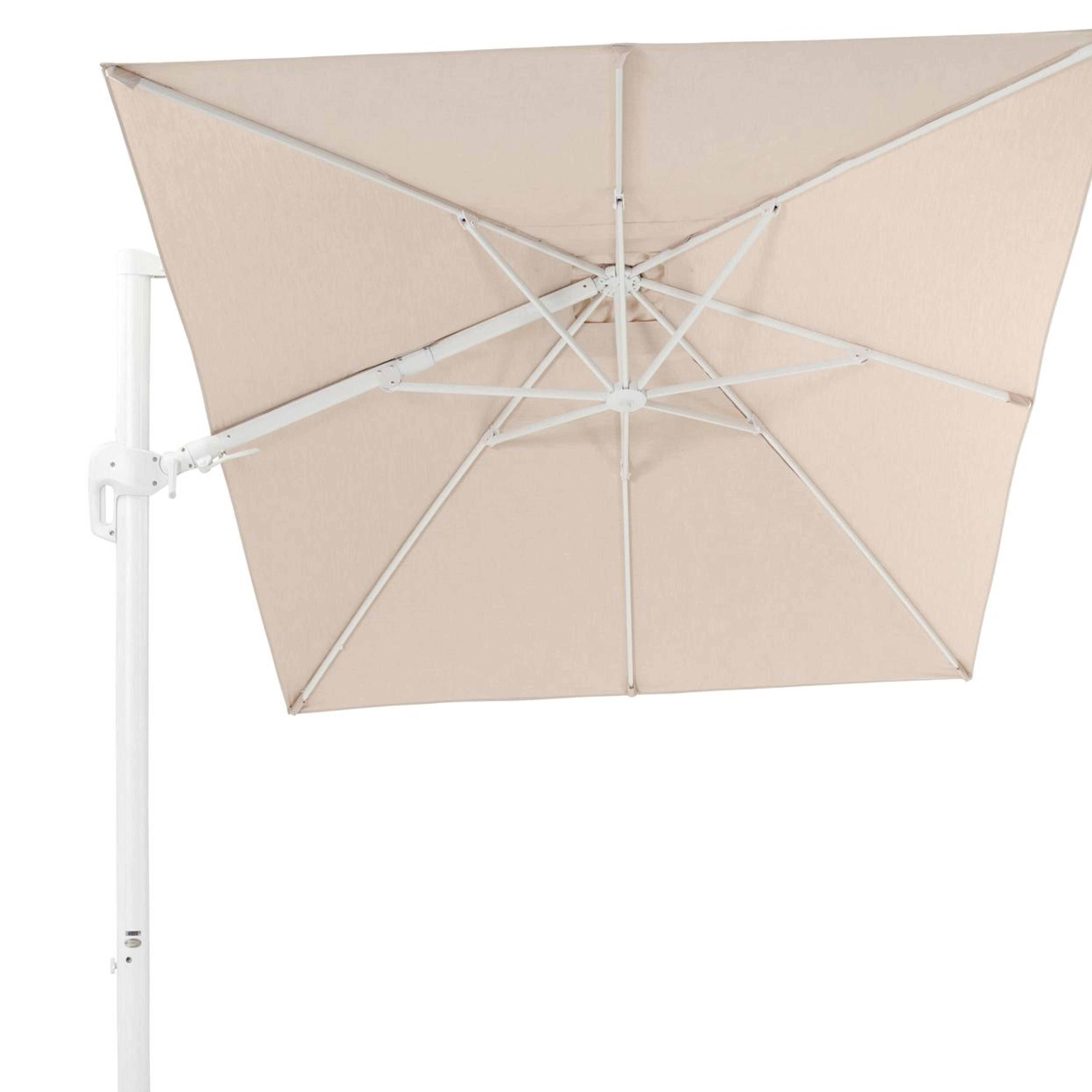 De Rufina parasol is een zeer gebruiksvriendelijke parasol. Het is een zweefparasol waardoor de mast niet in de weg staat. De parasol is makkelijk open te draaien via de hendel. Bovendien is hij ook in hoogte verstelbaar en beschikt de Rufina parasol ook over een tilt-functie. Deze functie biedt de mogelijkheid om de parasol te kantelen, zodat je de stand kunt aanpassen naar de positie van de zon.
