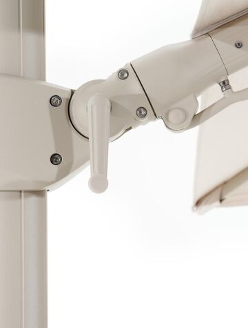 De Rufina parasol is een zeer gebruiksvriendelijke parasol. Het is een zweefparasol waardoor de mast niet in de weg staat. De parasol is makkelijk open te draaien via de hendel. Bovendien is hij ook in hoogte verstelbaar en beschikt de Rufina parasol ook over een tilt-functie. Deze functie biedt de mogelijkheid om de parasol te kantelen, zodat je de stand kunt aanpassen naar de positie van de zon.