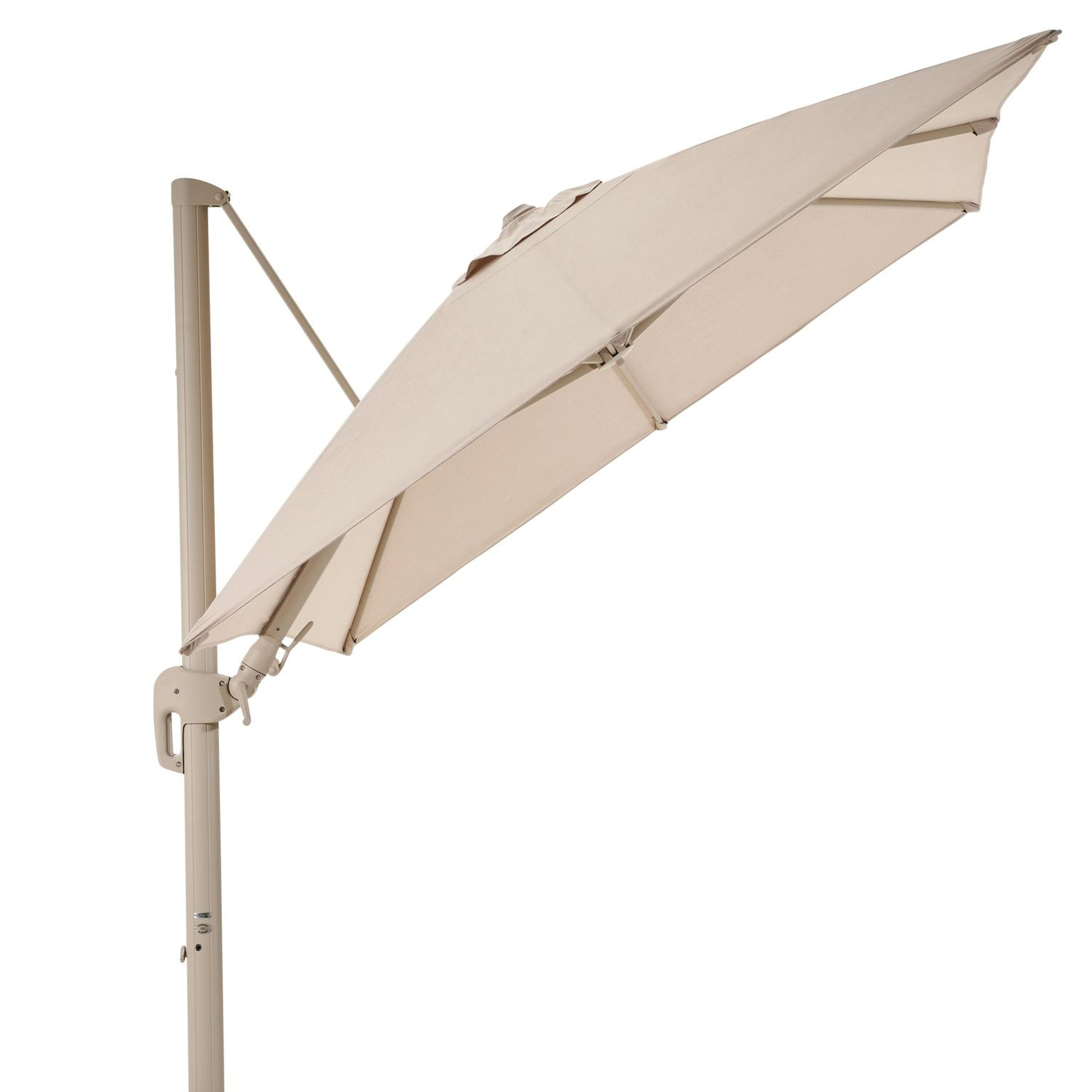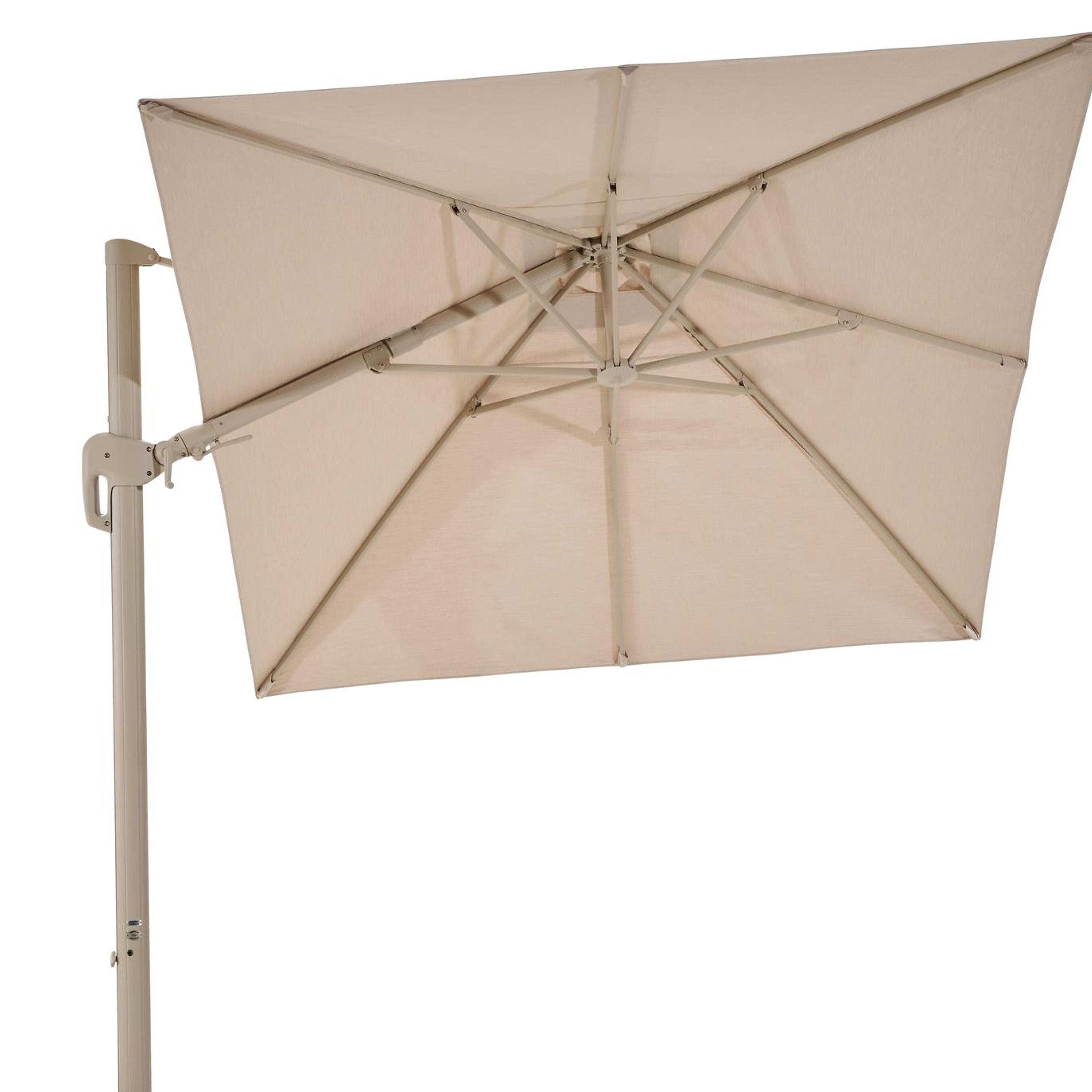 De Rufina parasol is een zeer gebruiksvriendelijke parasol. Het is een zweefparasol waardoor de mast niet in de weg staat. De parasol is makkelijk open te draaien via de hendel. Bovendien is hij ook in hoogte verstelbaar en beschikt de Rufina parasol ook over een tilt-functie. Deze functie biedt de mogelijkheid om de parasol te kantelen, zodat je de stand kunt aanpassen naar de positie van de zon.