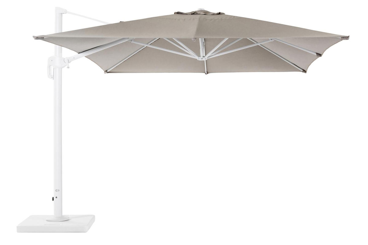 De Rufina zweefparasol geeft je schaduw in elke hoek van jouw terras met de handige tiltfunctie. De parasol kan rond zijn as draaien en is in de hoogte verstelbaar. De parasolvoet uit beton en beschermhoes zijn inclusief.
