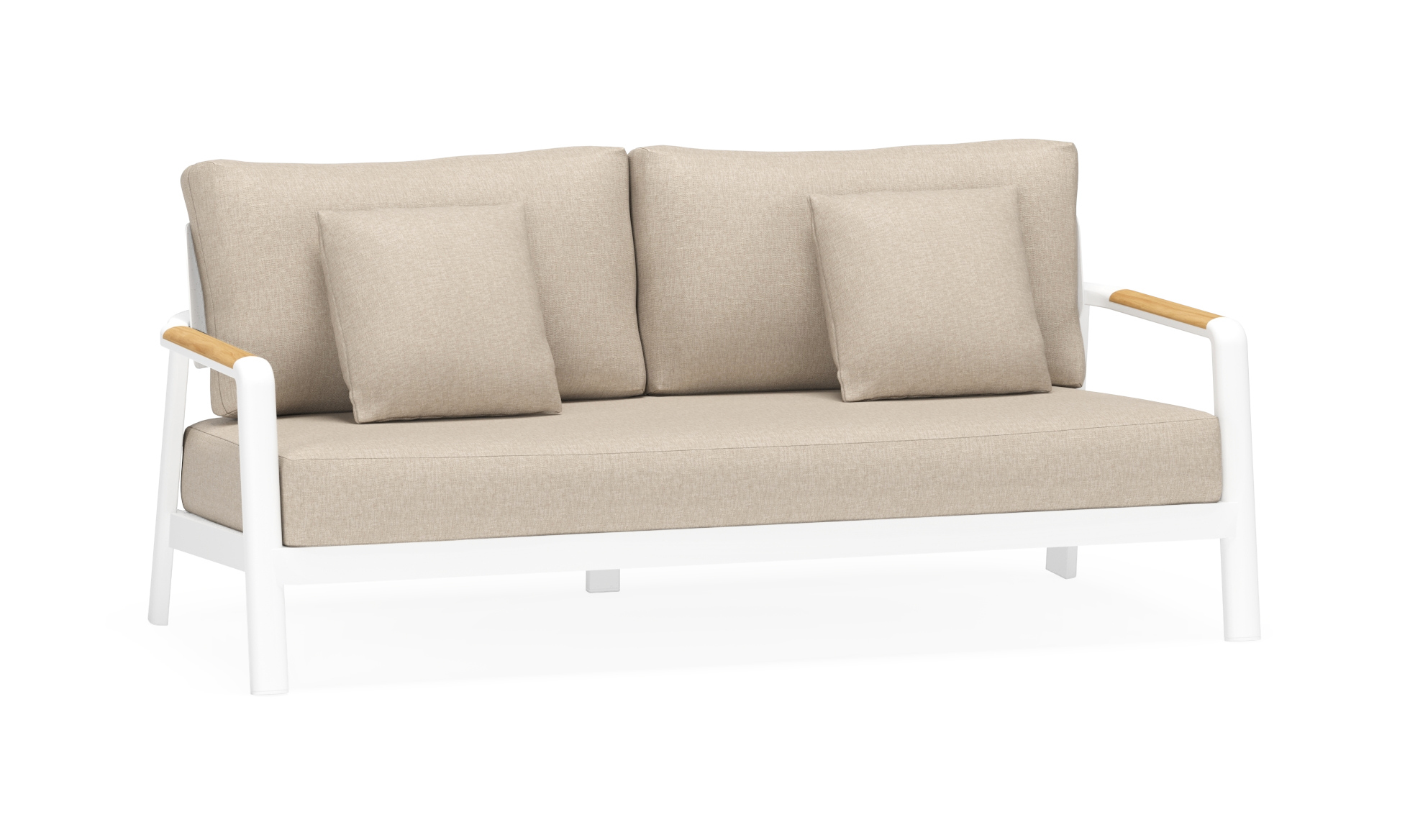 Het frame van de lounge is gemaakt uit roestvrij aluminium, een sterk, maar toch licht materiaal dat makkelijk verplaatsbaar is. Het oppervlak is glad afgewerkt waardoor het geen vuil aantrekt en onderhoudsvriendelijk is. De poedercoating zorgt voor de UV- en weersbestendigheid van je meubel. De armleuningen zijn afgewerkt in teak. Teak is een kwalitatieve houtsoort gekenmerkt door zijn hardheid.