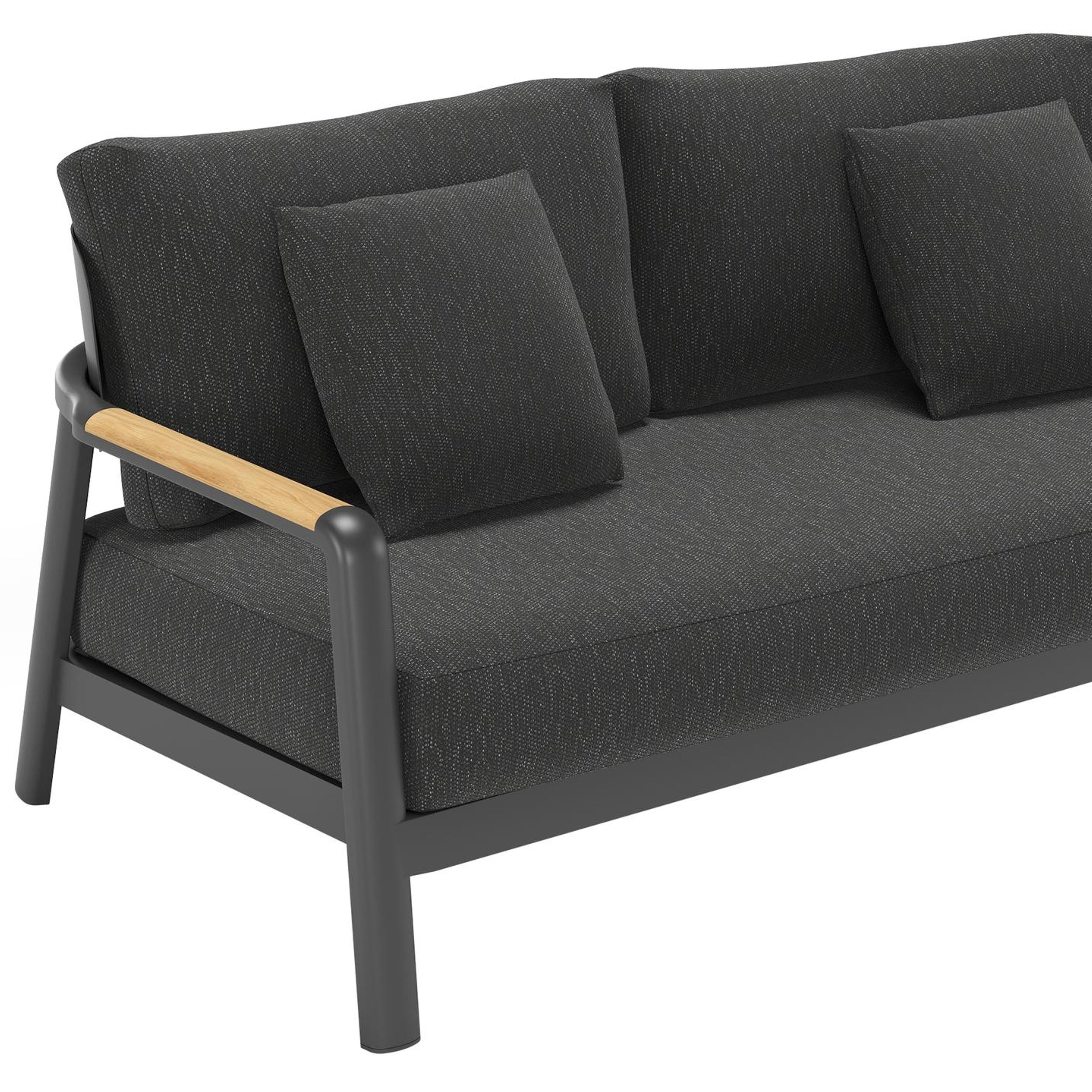 Het frame van de lounge is gemaakt uit roestvrij aluminium, een sterk, maar toch licht materiaal dat makkelijk verplaatsbaar is. Het oppervlak is glad afgewerkt waardoor het geen vuil aantrekt en onderhoudsvriendelijk is. De poedercoating zorgt voor de UV- en weersbestendigheid van je meubel. De armleuningen zijn afgewerkt in teak. Teak is een kwalitatieve houtsoort gekenmerkt door zijn hardheid.