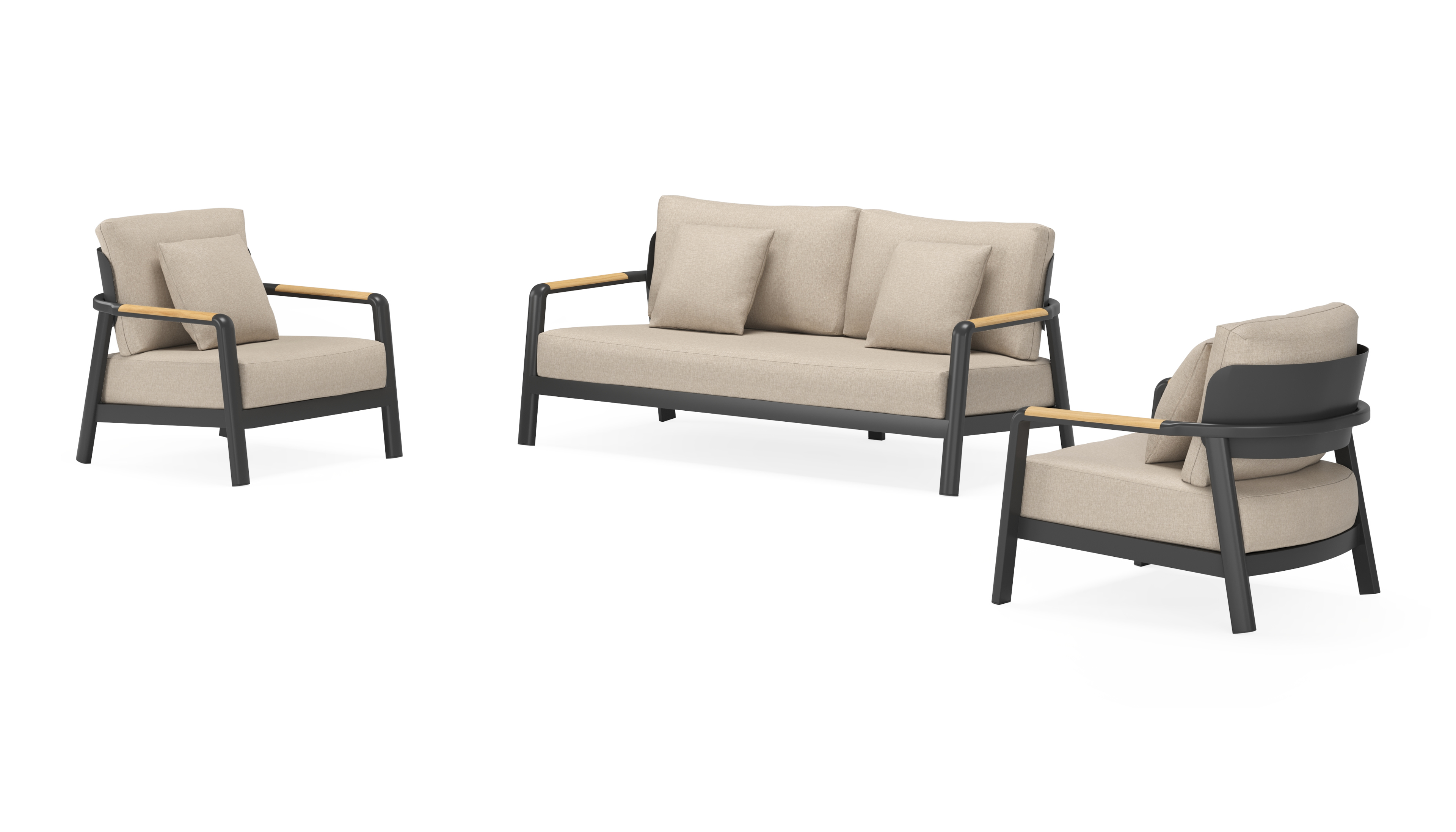 Het frame van de lounge is gemaakt uit roestvrij aluminium, een sterk, maar toch licht materiaal dat makkelijk verplaatsbaar is. Het oppervlak is glad afgewerkt waardoor het geen vuil aantrekt en onderhoudsvriendelijk is. De poedercoating zorgt voor de UV- en weersbestendigheid van je meubel. De armleuningen zijn afgewerkt in teak. Teak is een kwalitatieve houtsoort gekenmerkt door zijn hardheid.