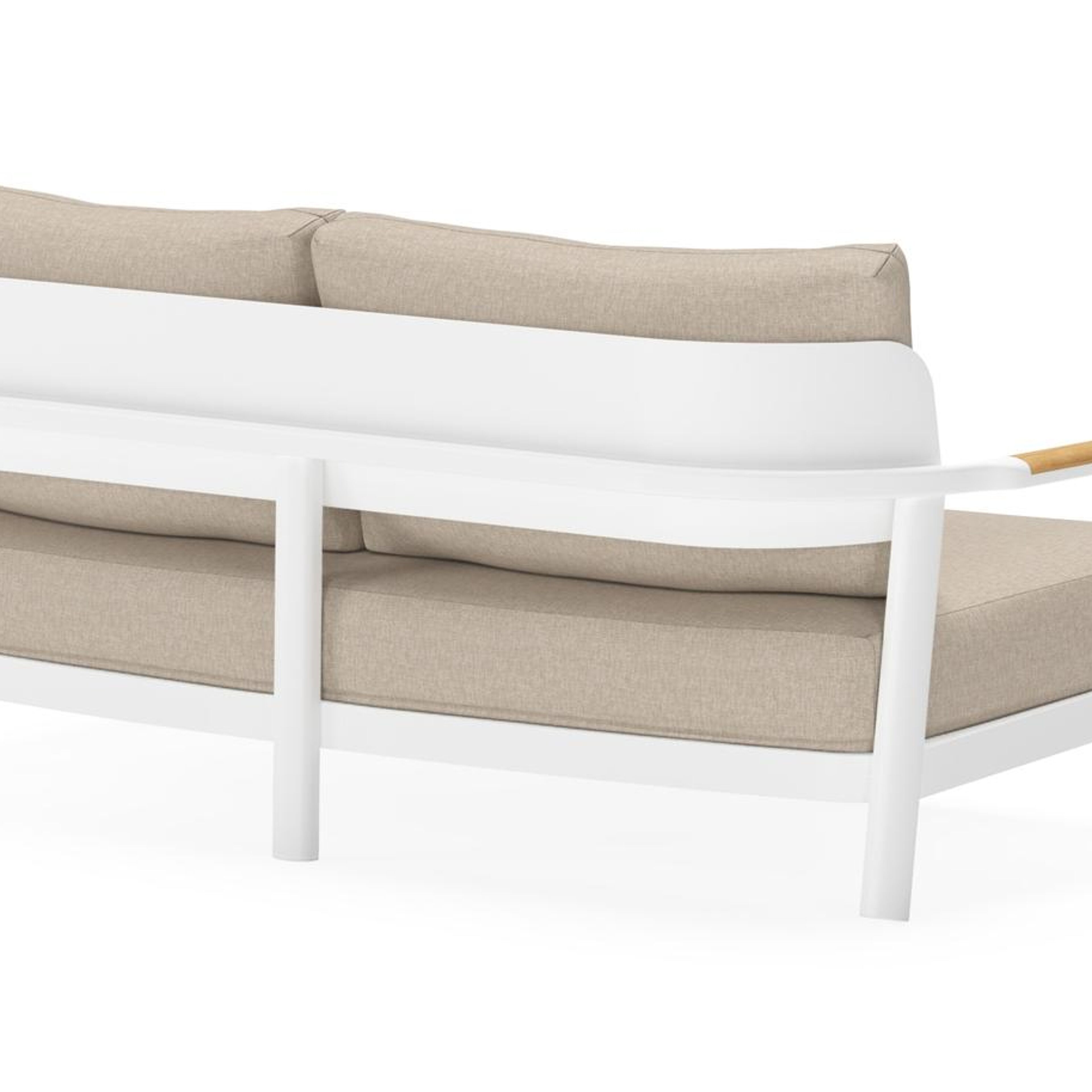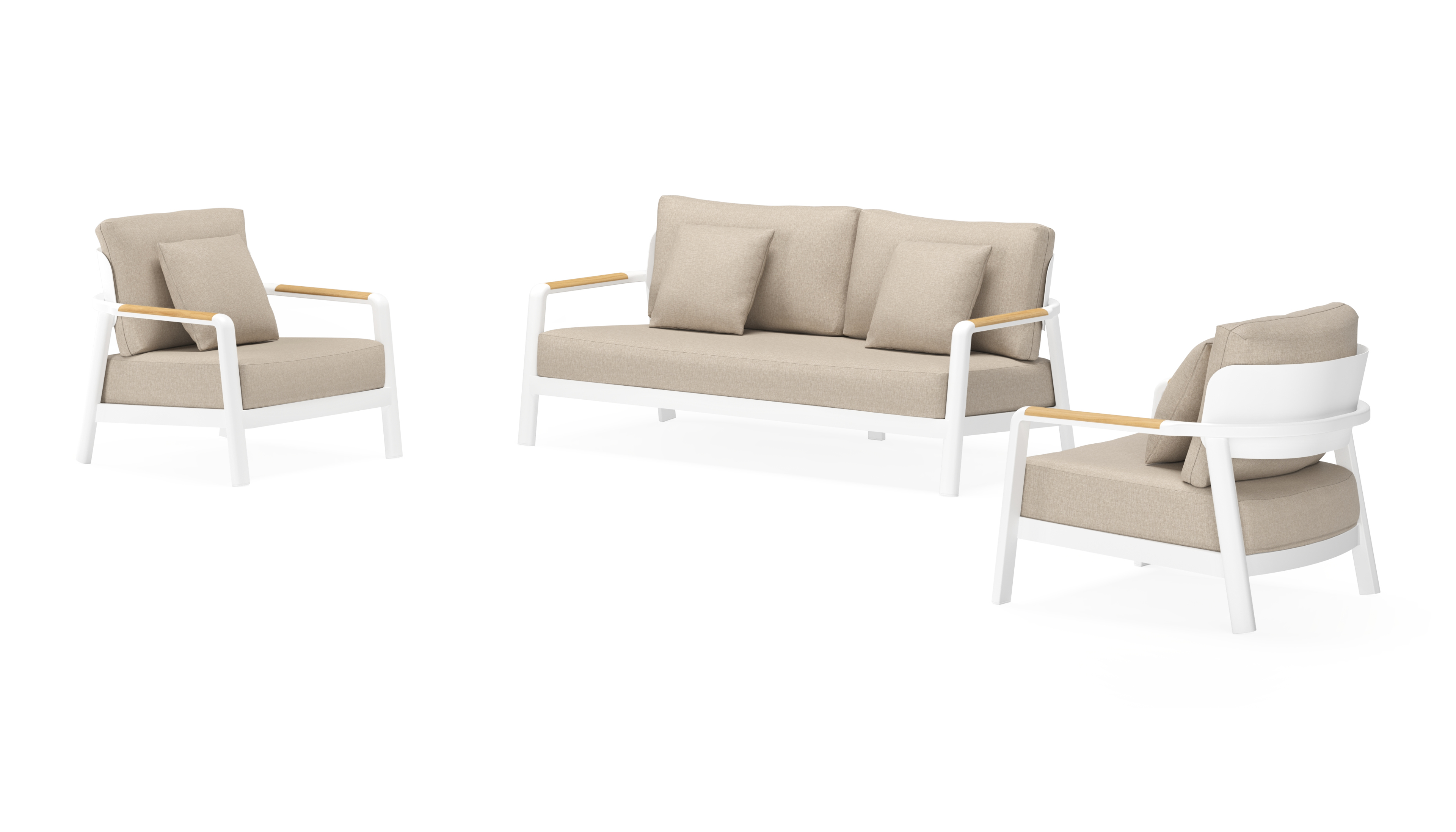 Het frame van de lounge is gemaakt uit roestvrij aluminium, een sterk, maar toch licht materiaal dat makkelijk verplaatsbaar is. Het oppervlak is glad afgewerkt waardoor het geen vuil aantrekt en onderhoudsvriendelijk is. De poedercoating zorgt voor de UV- en weersbestendigheid van je meubel. De armleuningen zijn afgewerkt in teak. Teak is een kwalitatieve houtsoort gekenmerkt door zijn hardheid.