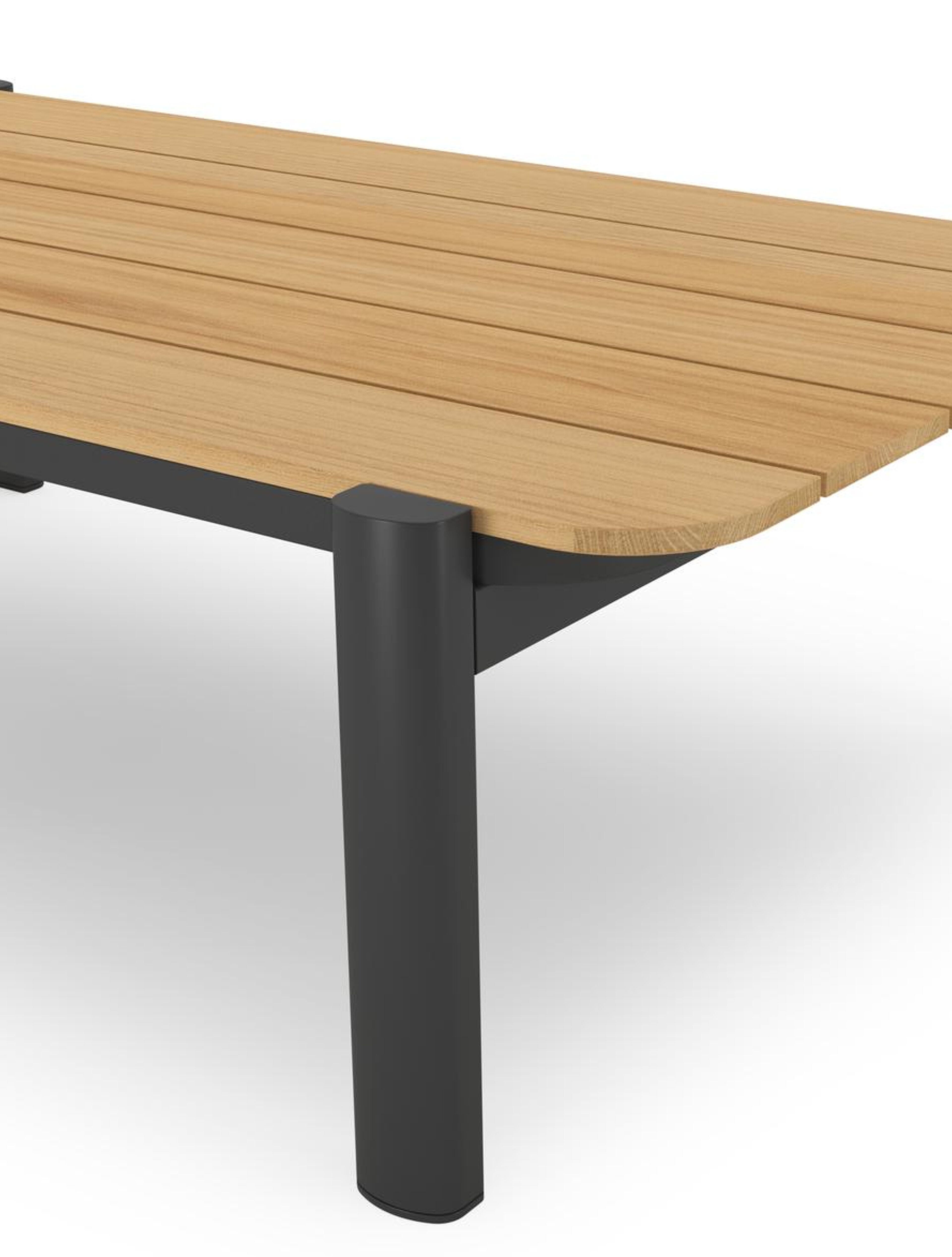 De Salamanca loungetafel brengt balans tussen modern design en natuurlijke elementen. Het aluminium frame wekt de illusie het tafelblad te dragen. Het tafelblad in teak voegt een natuurlijk element toe aan het geheel. De afgeronde hoeken maken de loungetafel veilig en comfortabel in gebruik.