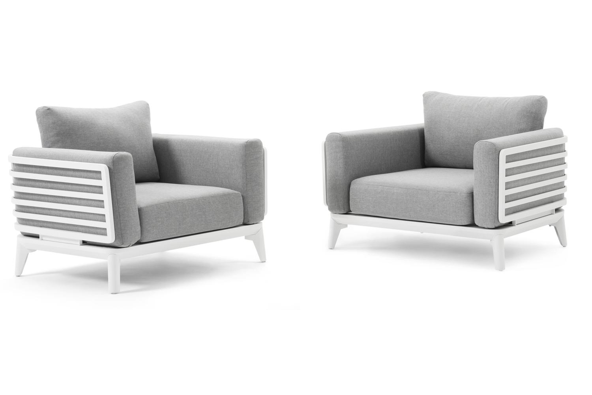 Mosa loungezetels 2 x 1-zit in wit aluminium met grijs weather+ softtouch kussen | Exterioo