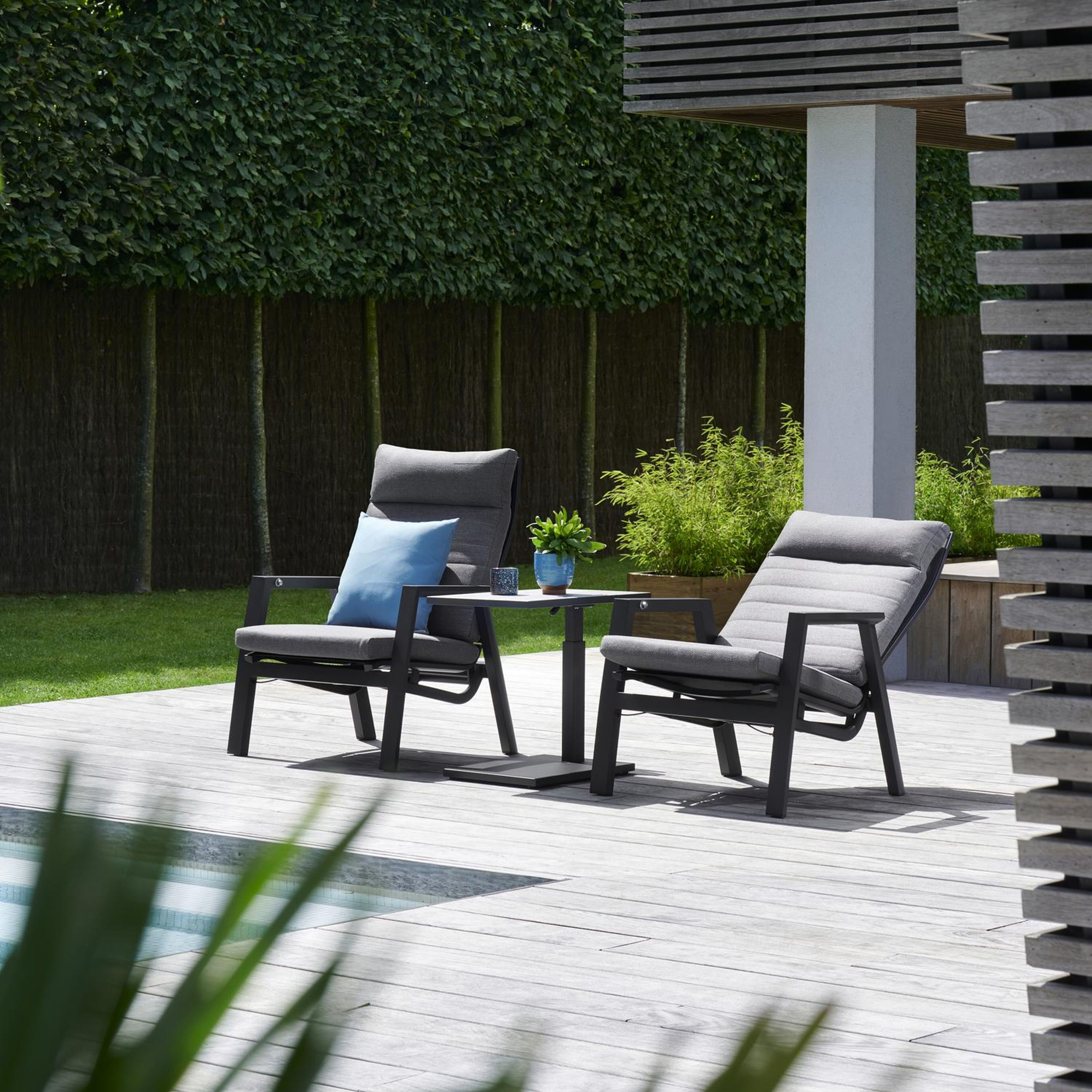 De verstelbare Prato balkon lounge is een echte musthave voor op jouw terras. Het zwarte frame, gemaakt uit aluminium, heeft een strak design. De grijze softtouch kussens zijn inbegrepen in de set. De lounge heeft 2 zitplaatsen. De afmetingen zijn: 1-zit: B 69 x D 80 x H 100 cm. Met deze Prato balkon lounge beleef je onschatbare momenten voor een betaalbare prijs.