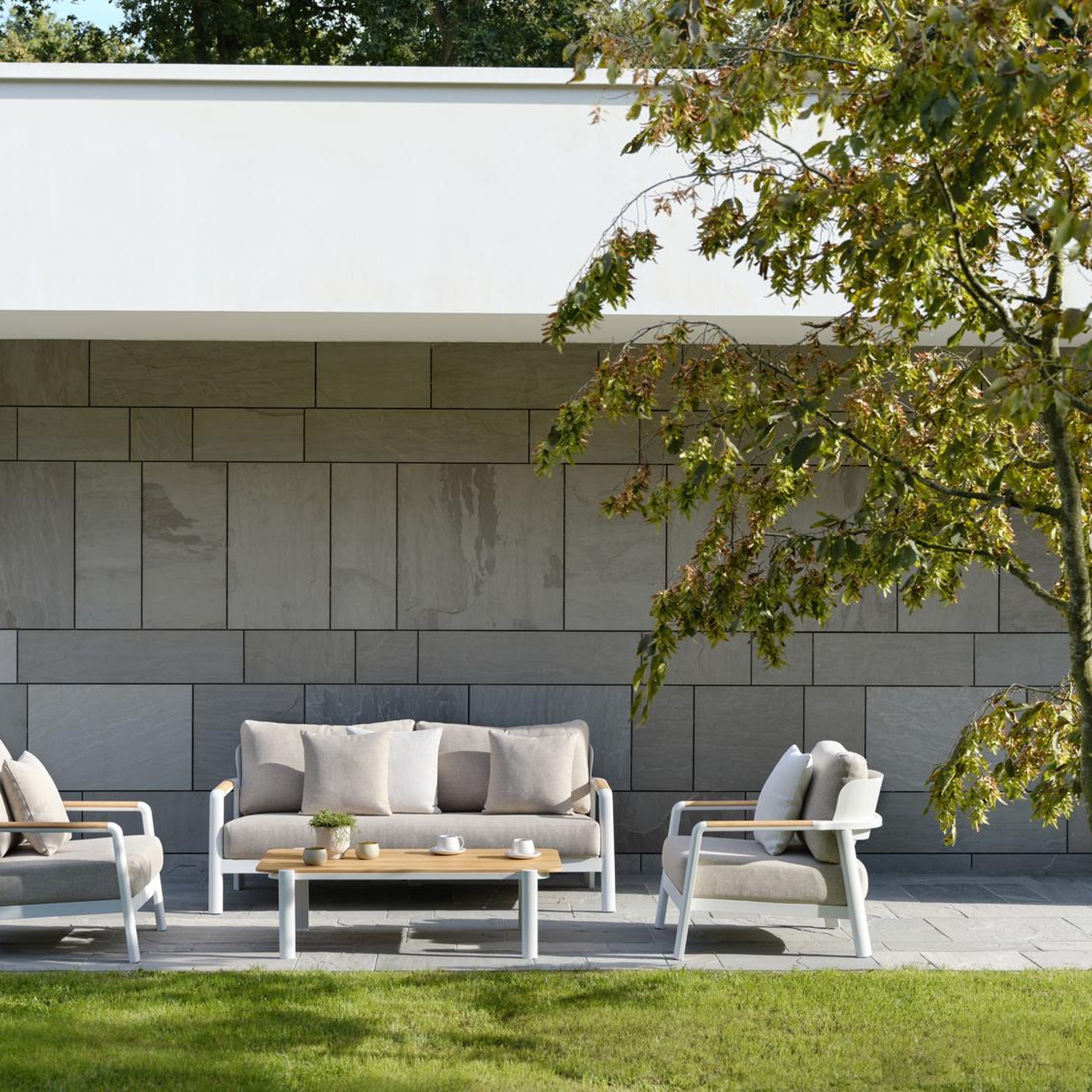 Set van 2 Salamanca loungestoelen 2 x 1-zit in wit aluminium en teak met desert weather+ softtouch kussen | Exterioo tuinmeubelen