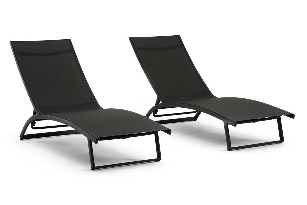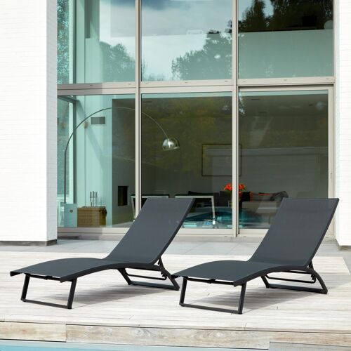 Set van 2 verstelbare Calvia ligbedden in zwart aluminium en zwart textilene | Exterioo