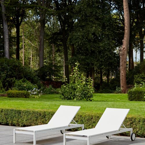 Set van 2 verstelbare Caravelle ligbedden in wit aluminium en wit textilene | Exterioo