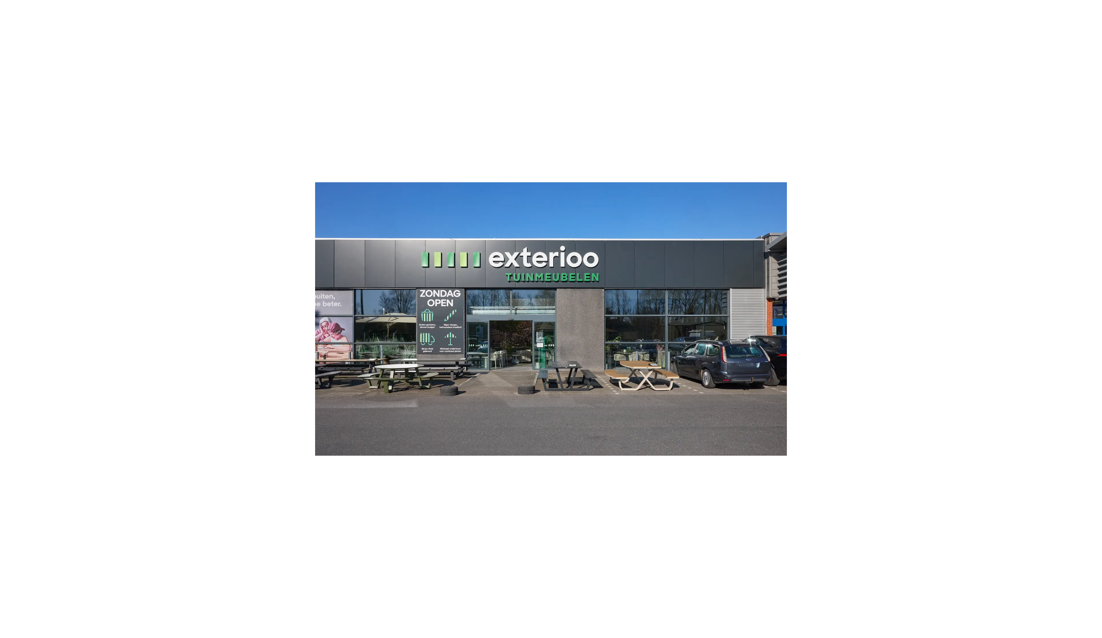 Op zoek naar tuinmeubelen in Kuurne of omgeving? Bij Exterioo Kuurne geniet je van een ruime showroom van 1500 m² boordevol inspiratie voor jouw tuin of terras. Van loungesets en tuinstoelen tot ligbedden en parasols: je ontdekt er het volledige assortiment in eigen design en duurzame kwaliteit. Onze locatie aan de Kleine Ringlaan is makkelijk bereikbaar en biedt gratis parking met oplaadmogelijkheden voor je elektrische wagen. Met meer dan 20 jaar ervaring en 33 winkels in België en Nederland is Exterioo dé referentie in tuininrichting. Kom langs en laat je persoonlijk adviseren door ons ervaren team – jouw buitenplek begint hier.