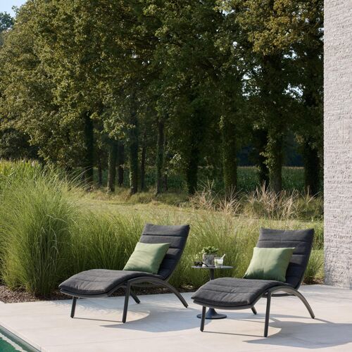 Het Siena ligbed combineert een gestroomlijnd aluminium frame met textilene materiaal.