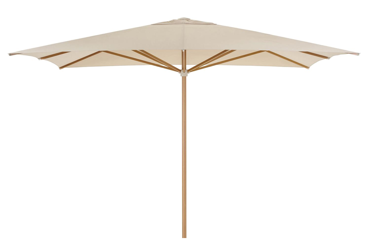 Solino staanparasol in houtlook met beige all weather sunbrella® premium parasoldoek - L1 400 x L2 400 cm (zonder voet) | Exterioo