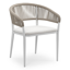 Tolfa stapelbare tuinstoel in wit aluminium en beige verticaal geweven luxe vlakke brede rope met stoelkussen in All Weather Solica Soul Optik | Exterioo