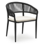 Tolfa stapelbare tuinstoel in zwart aluminium en zwart verticaal geweven ronde rope met stoelkussen in All Weather Cosytica Althea Off White | Exterioo