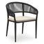 Tolfa stapelbare tuinstoel in zwart aluminium en zwart verticaal geweven ronde rope met stoelkussen in All Weather Cosytica Althea Chalk | Exterioo
