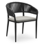 Tolfa stapelbare tuinstoel in zwart aluminium en zwart verticaal geweven luxe vlakke brede rope met stoelkussen in All Weather Sunbrella® Luxe Savane Tunder | Exterioo