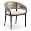 Tolfa stapelbare tuinstoel in zwart aluminium en beige verticaal geweven luxe vlakke brede rope met stoelkussen in All Weather Cosytica Althea Camel | Exterioo