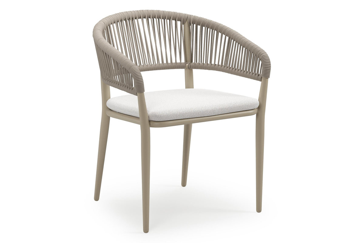 Tolfa stapelbare tuinstoel in beige aluminium en beige verticaal geweven ronde rope met stoelkussen in All Weather Solica Soul Optik | Exterioo