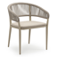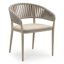 Tolfa stapelbare tuinstoel in beige aluminium en beige verticaal geweven luxe vlakke brede rope met stoelkussen in All Weather Cosytica Marbella Beige | Exterioo