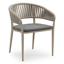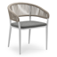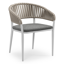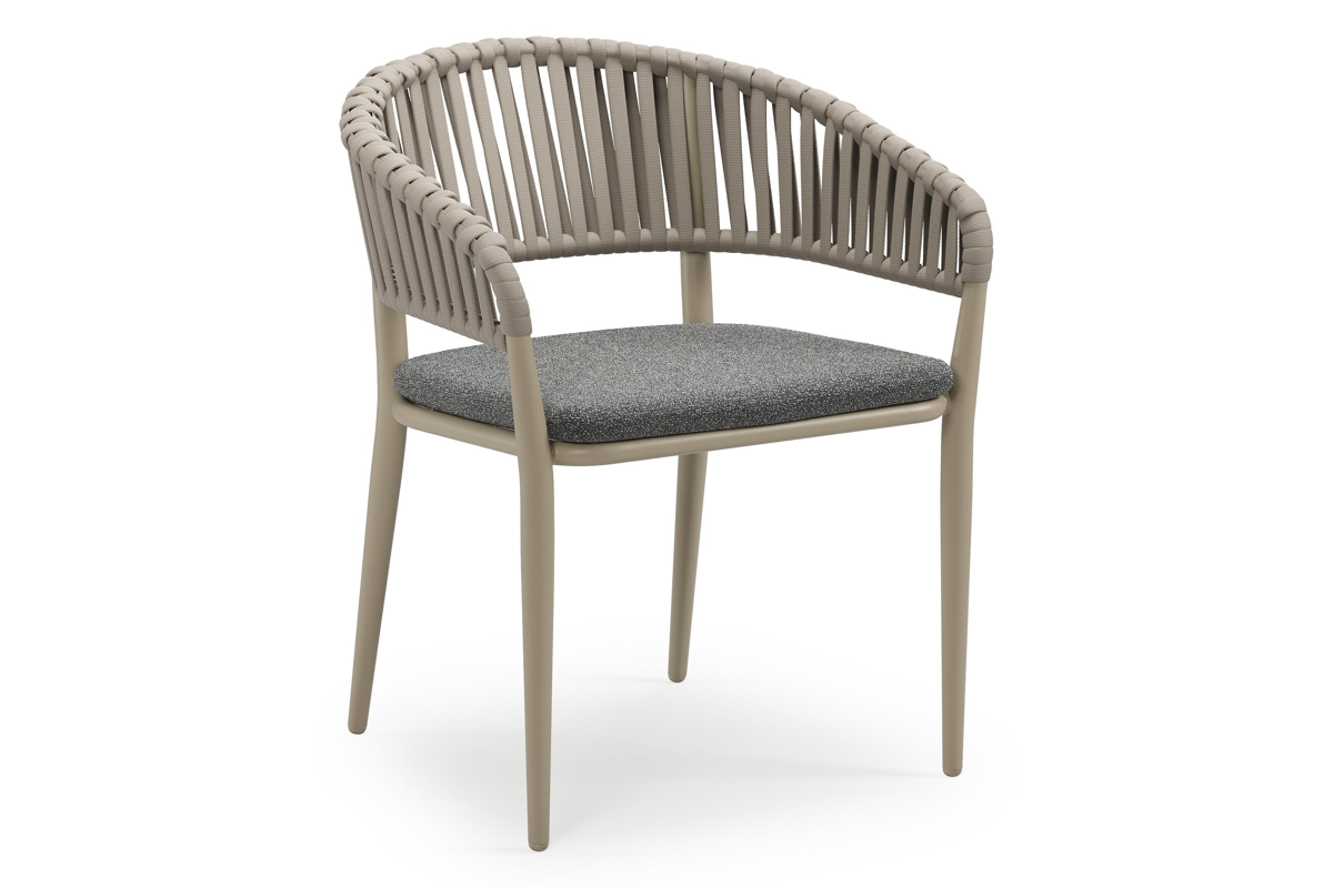 Tolfa stapelbare tuinstoel in beige aluminium en beige verticaal geweven luxe vlakke brede rope met stoelkussen in All Weather Cosytica Catania Black | Exterioo