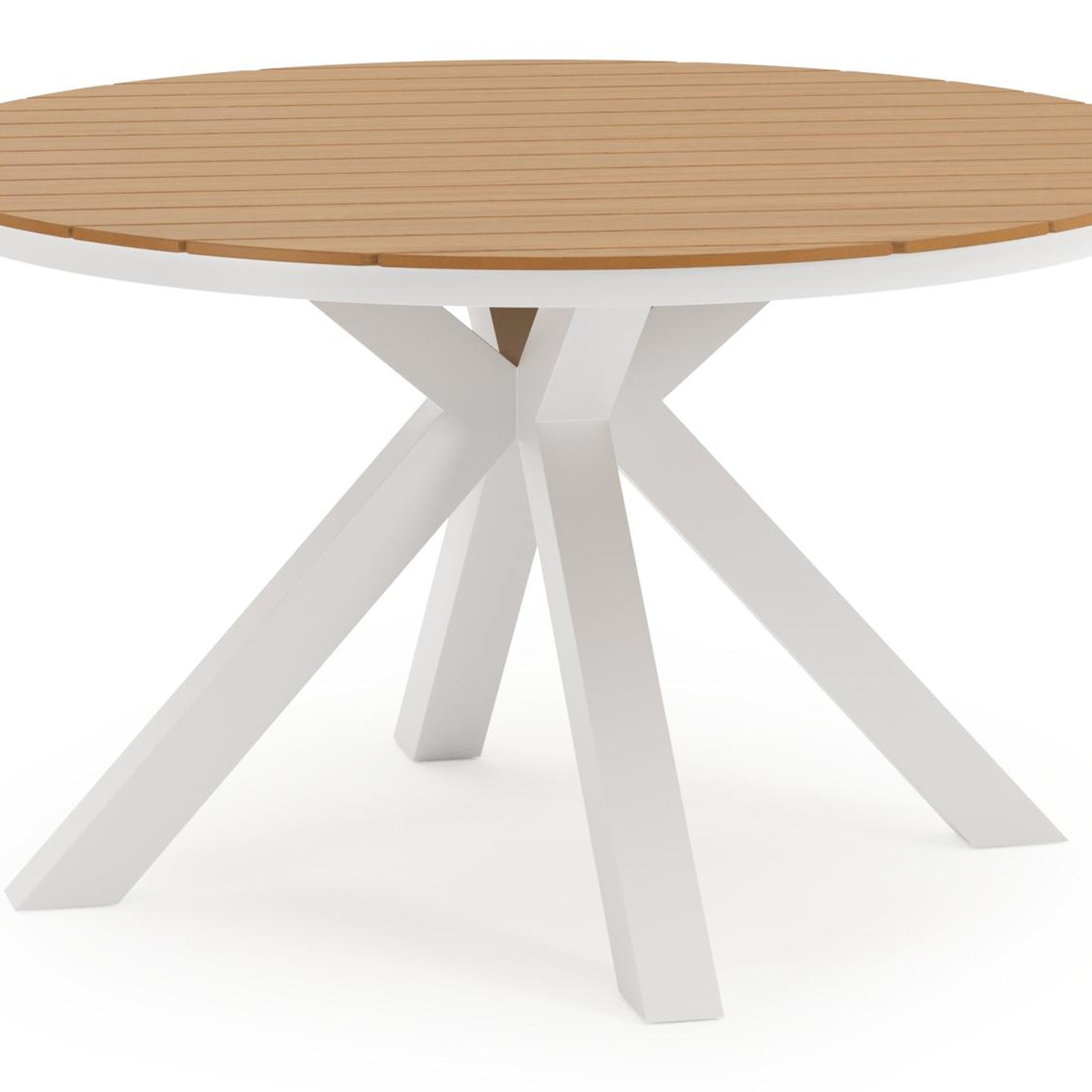 Tora tuinset is een collectie met ronde tafels. De kenmerkende kruispoot splitst zich onder het frame uit in vier gespreide poten, wat zorgt voor extra stabiliteit.