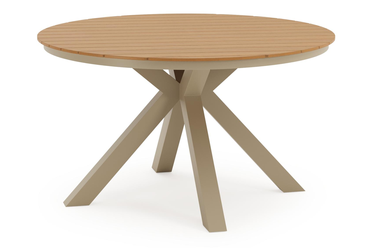 Tora tuintafel rond in beige aluminium en polywood - Dia. 140 x H 74 cm | Exterioo