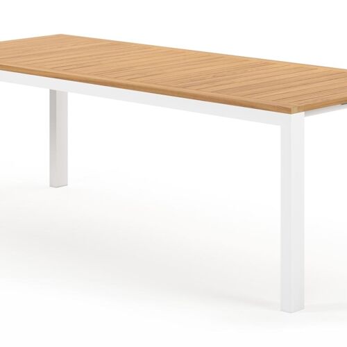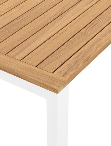 Een tafelblad uit teak staat gelijk aan bijzondere kwaliteit en natuurlijk design. Teak is een kwalitatieve houtsoort gekenmerkt door zijn hardheid. Aangezien hout leeft, kan de structuur of kleur licht anders zijn dan op het beeld weergegeven.