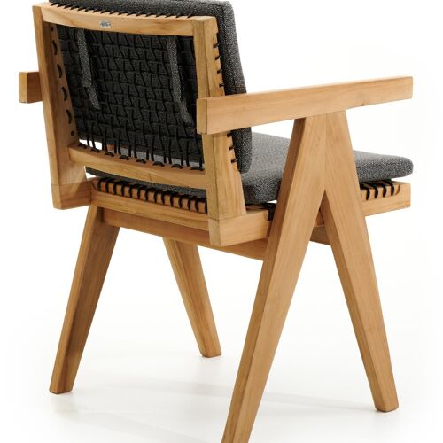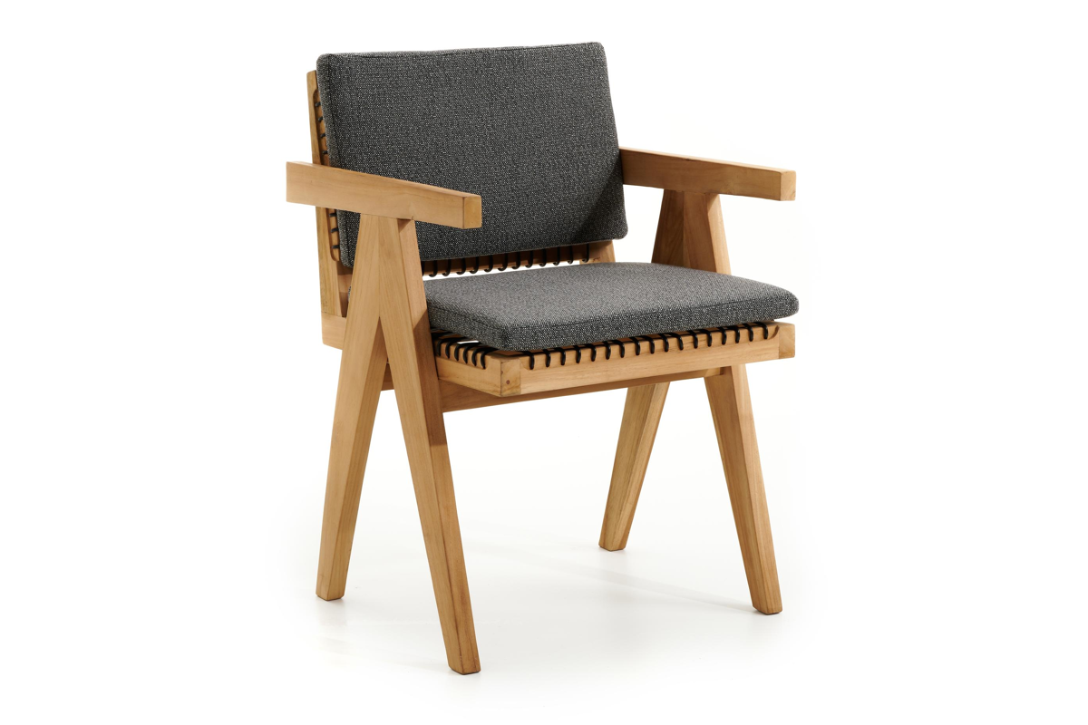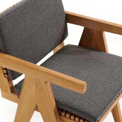 Trentino tuinstoel in teak en naturel ronde wicker met kussen in savane tornado all weather sunbrella® luxe | Exterioo