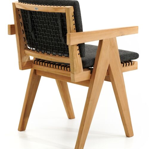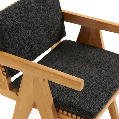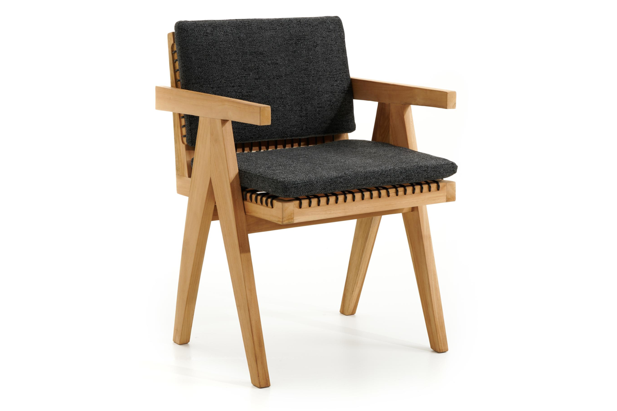 Trentino tuinstoel in teak en naturel ronde wicker met kussen in chartres sooty all weather sunbrella® luxe | Exterioo