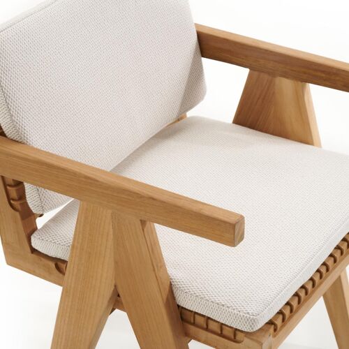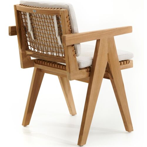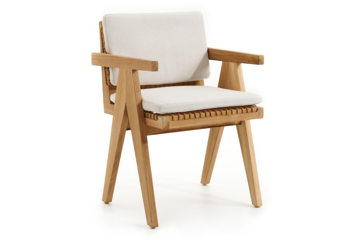 Trentino tuinstoel in teak en naturel ronde wicker met kussen in lopi marble all weather sunbrella® luxe | Exterioo