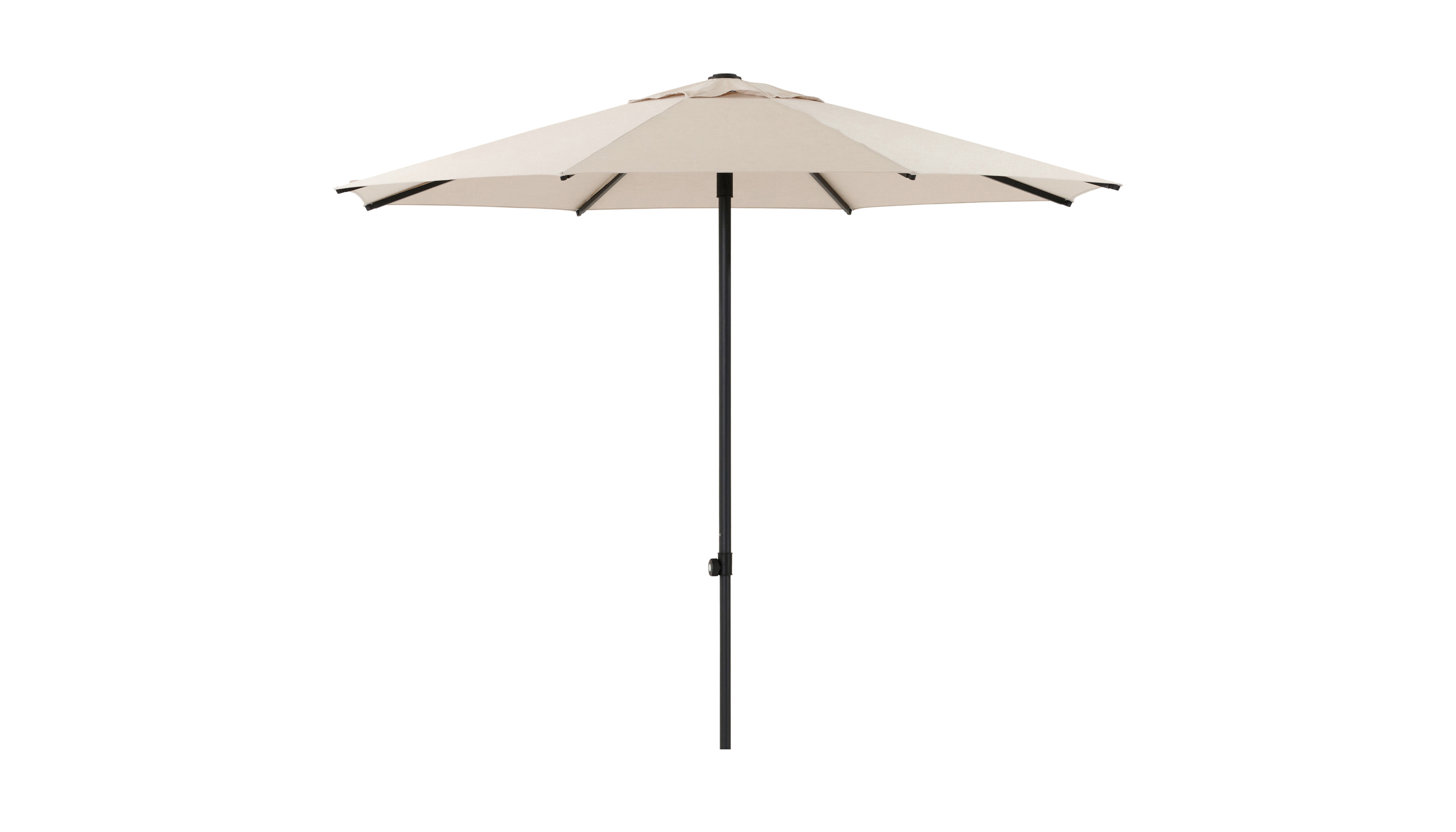 De Umbria parasol is een ronde staanparasol die je eenvoudig kan openen en sluiten via het knopmechanisme. De parasol is ideaal om ook op een klein balkon of terras te gebruiken.