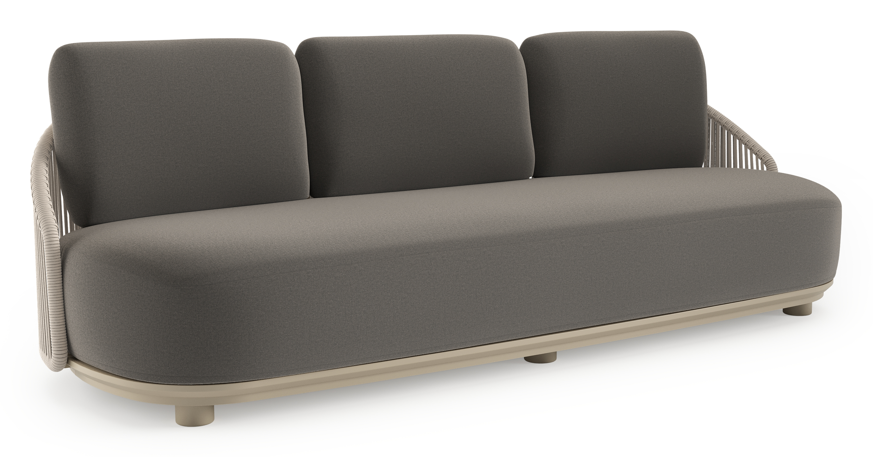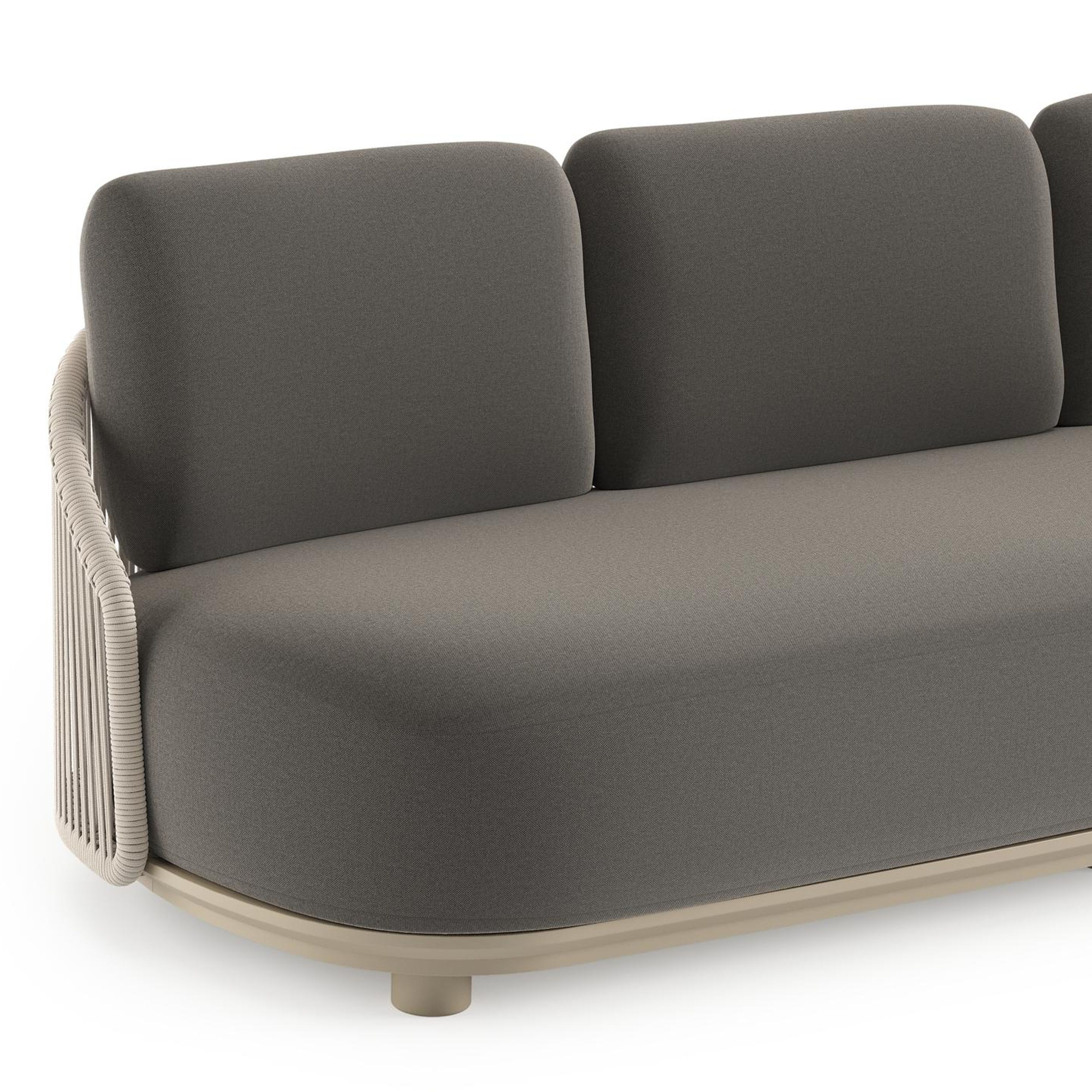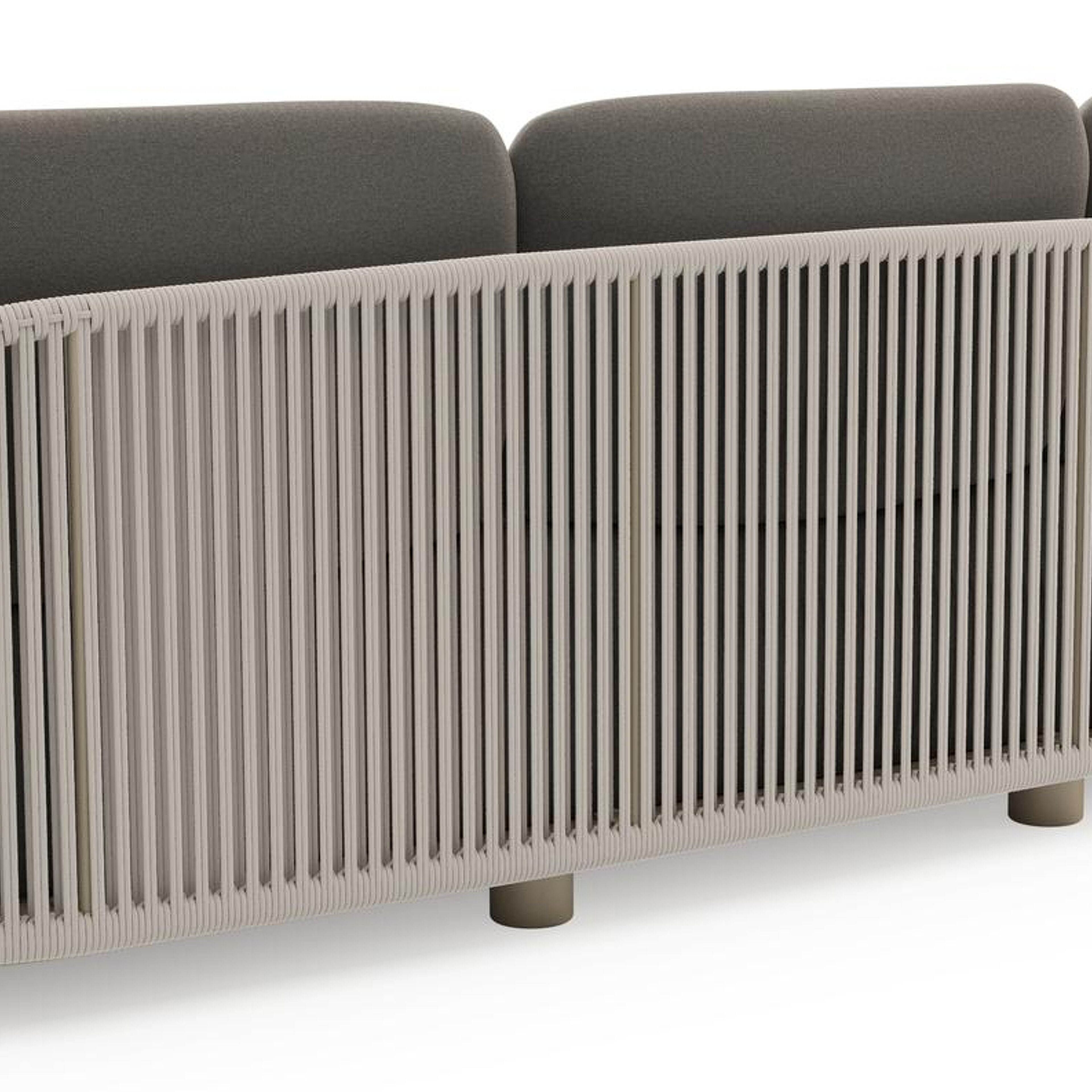 Vadelo loungebank in beige aluminium en beige verticaal geweven ronde rope met natte dark taupe all weather sunbrella® luxe kussen | Exterioo tuinmeubelen