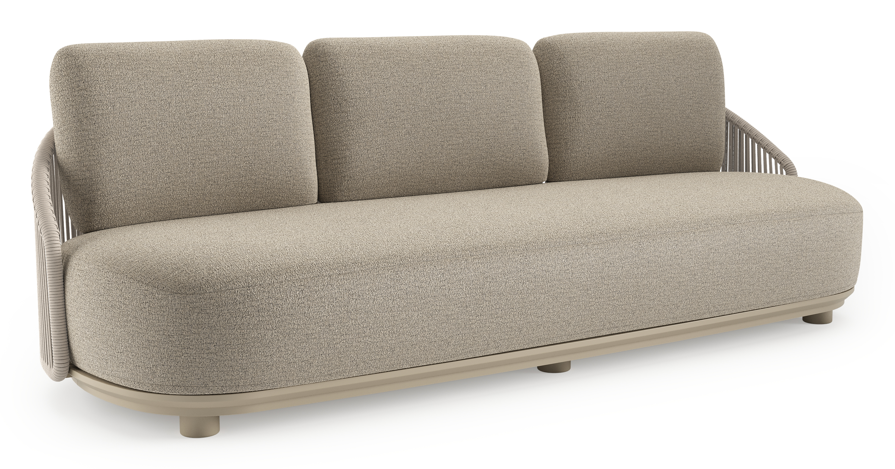 Vadelo loungebank in beige aluminium en beige verticaal geweven ronde rope met catania beige all weather cosytica kussen | Exterioo tuinmeubelen