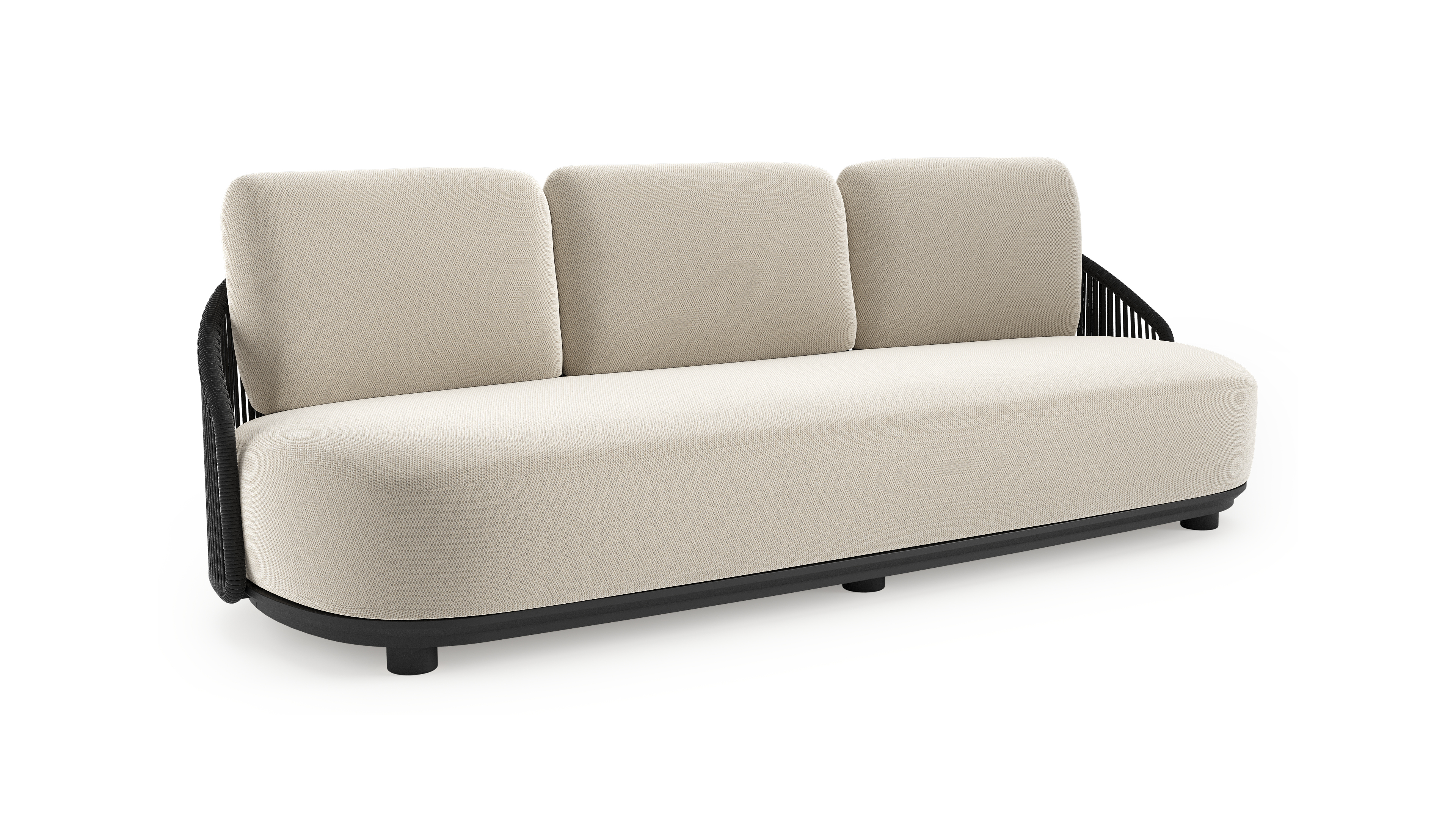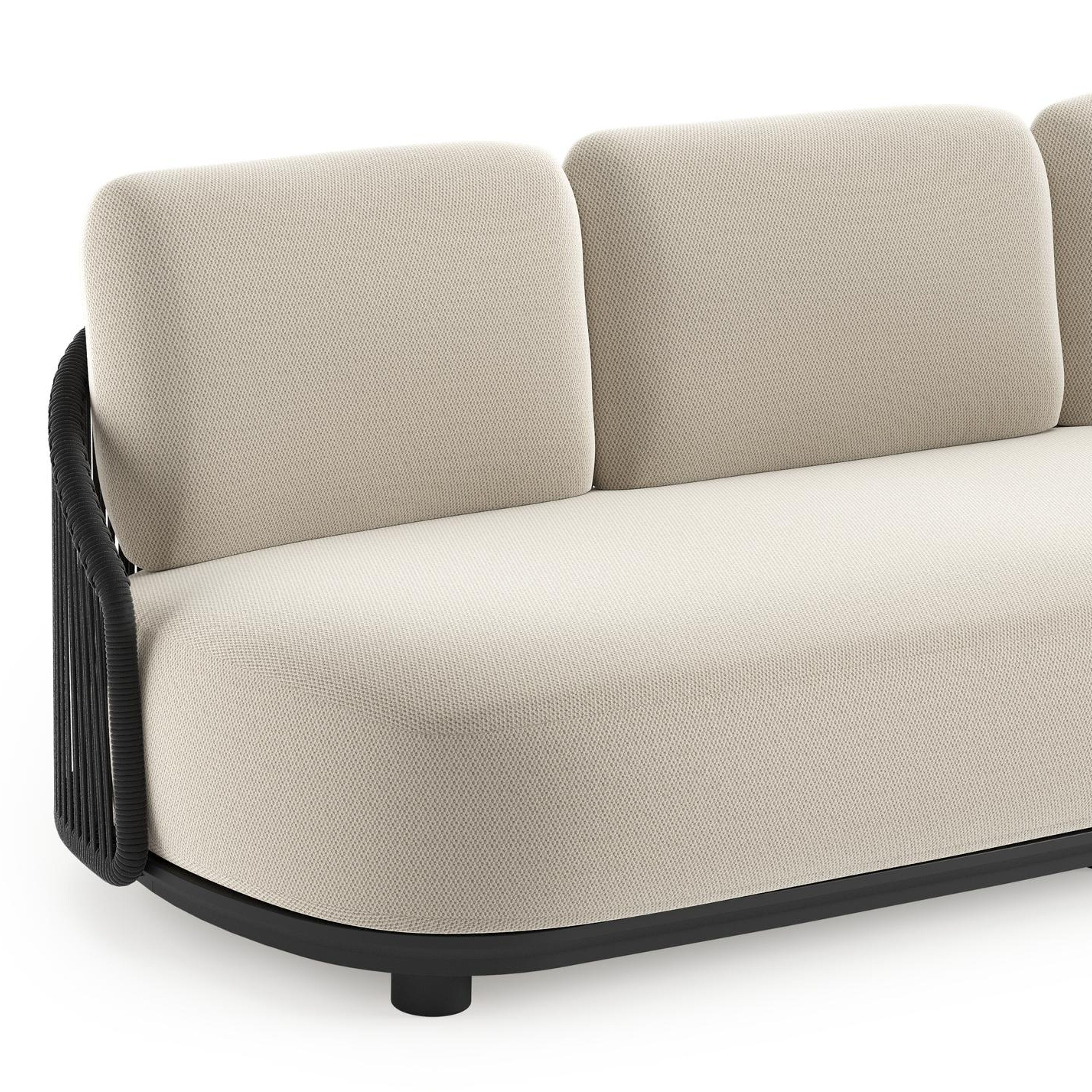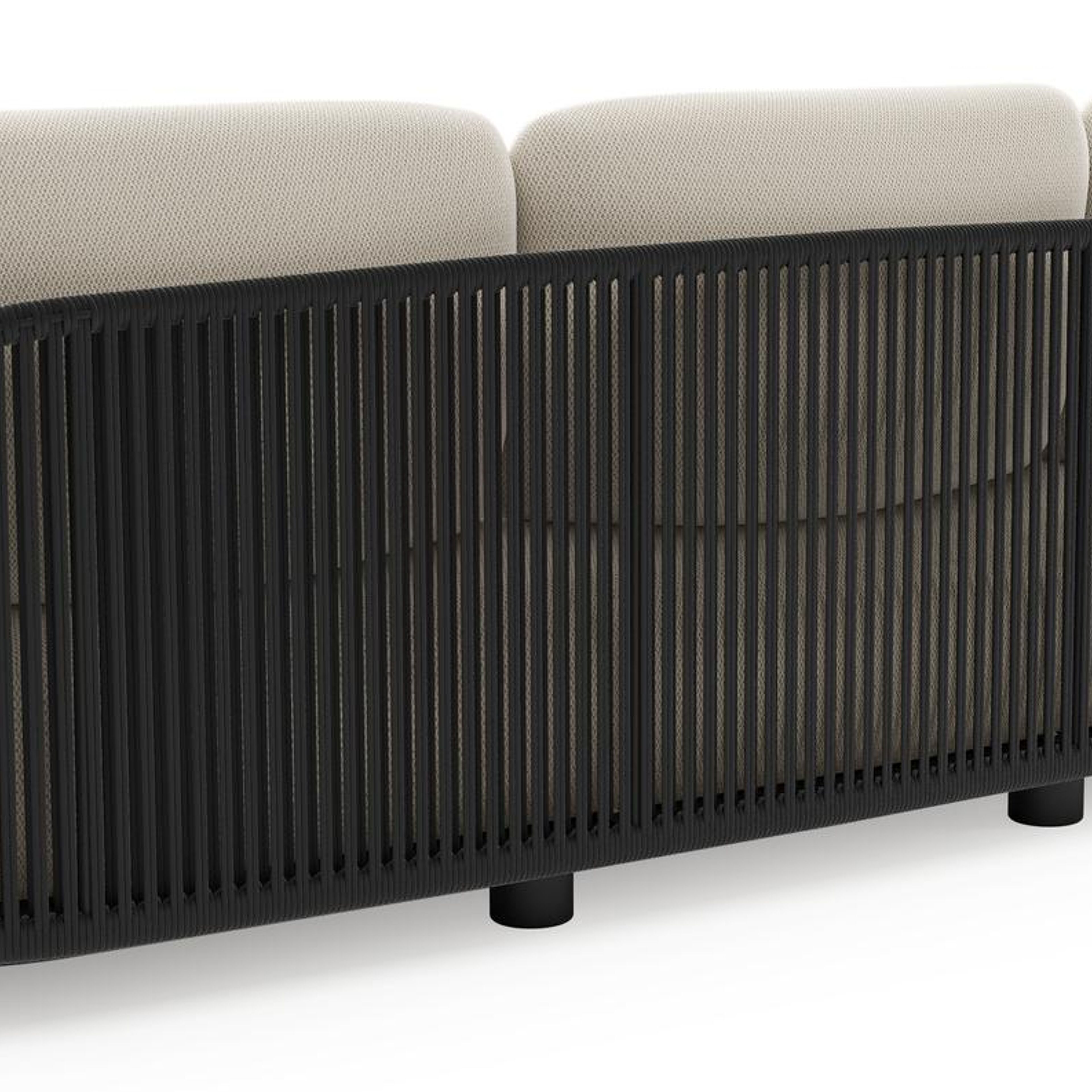 Vadelo loungebank in zwart aluminium en zwart verticaal geweven ronde rope met lopi marble all weather sunbrella® luxe kussen | Exterioo tuinmeubelen