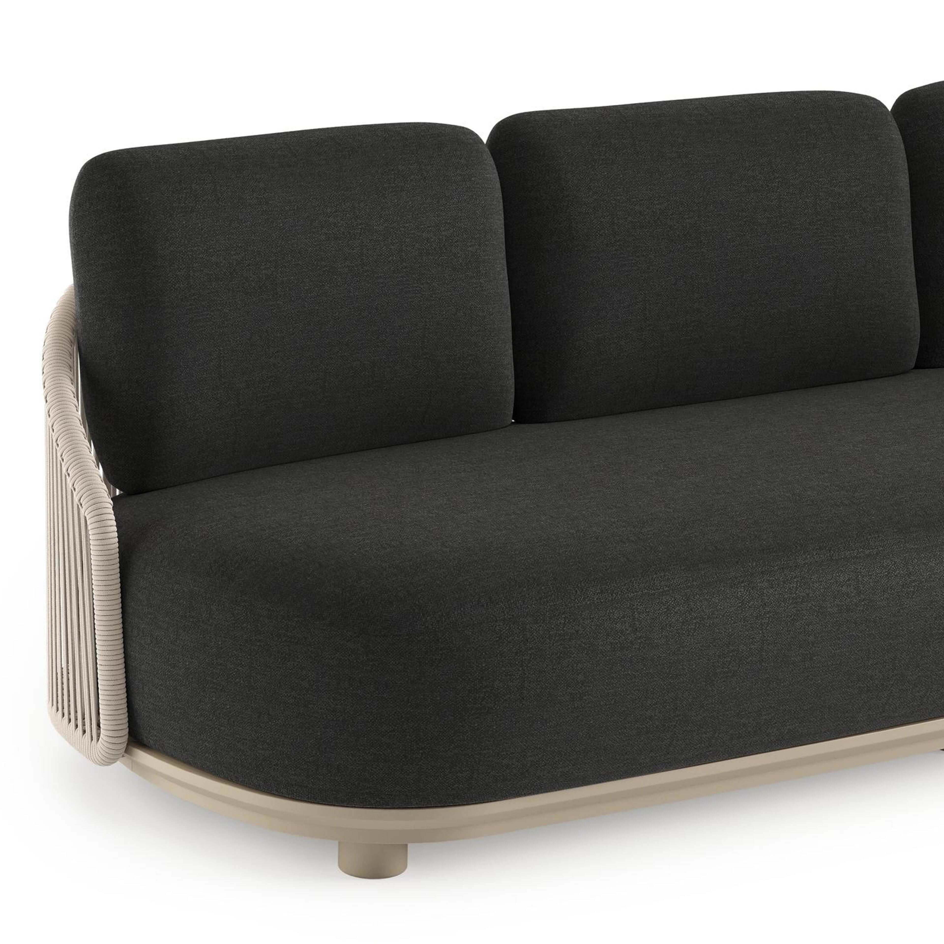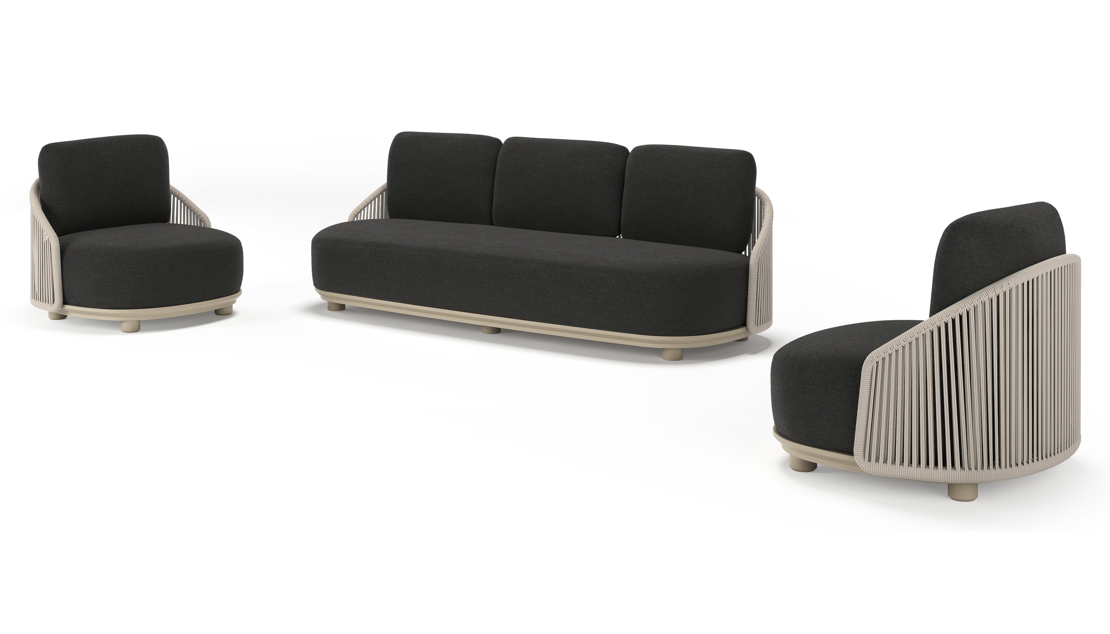 Groot, zacht en onweerstaanbaar uitnodigend. Vadelo omarmt de chunky & bold trend met oversized kussens en een afgeronde afwerking in round rope. Een volumineuze lounge die niet alleen comfort brengt, maar ook karakter toevoegt aan je tuin.