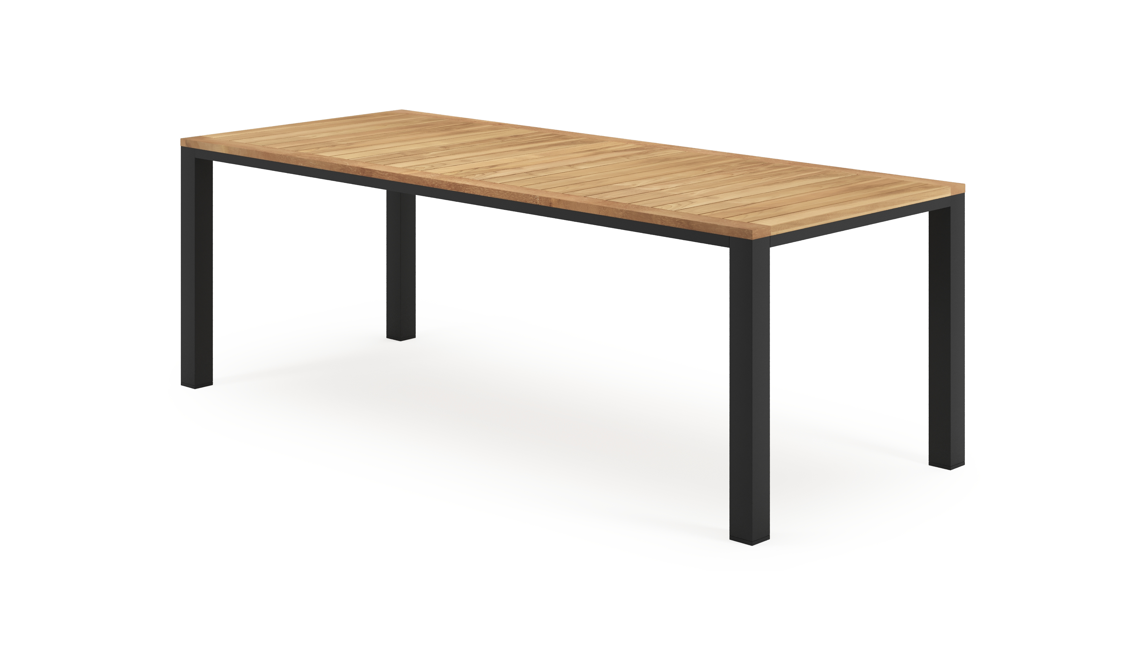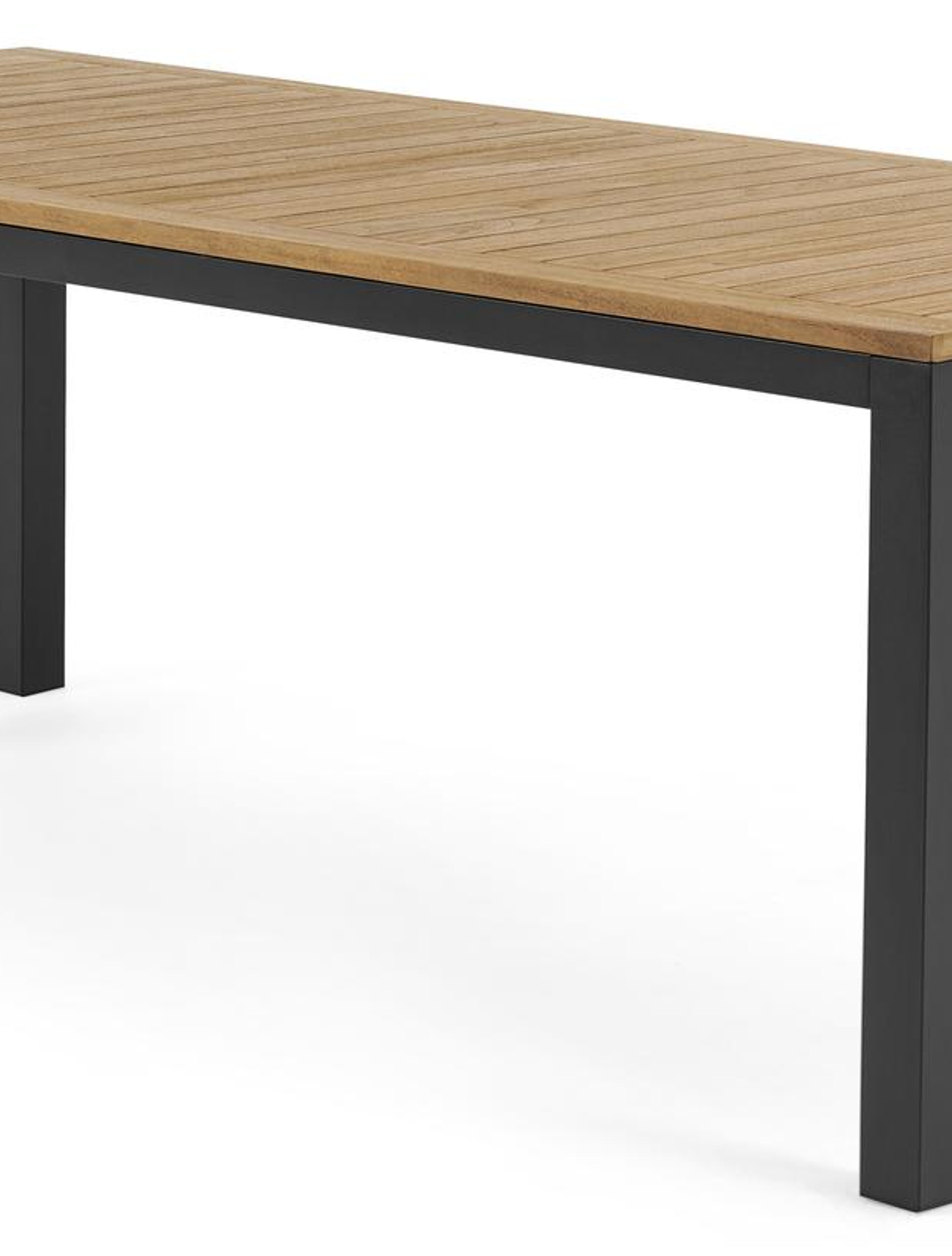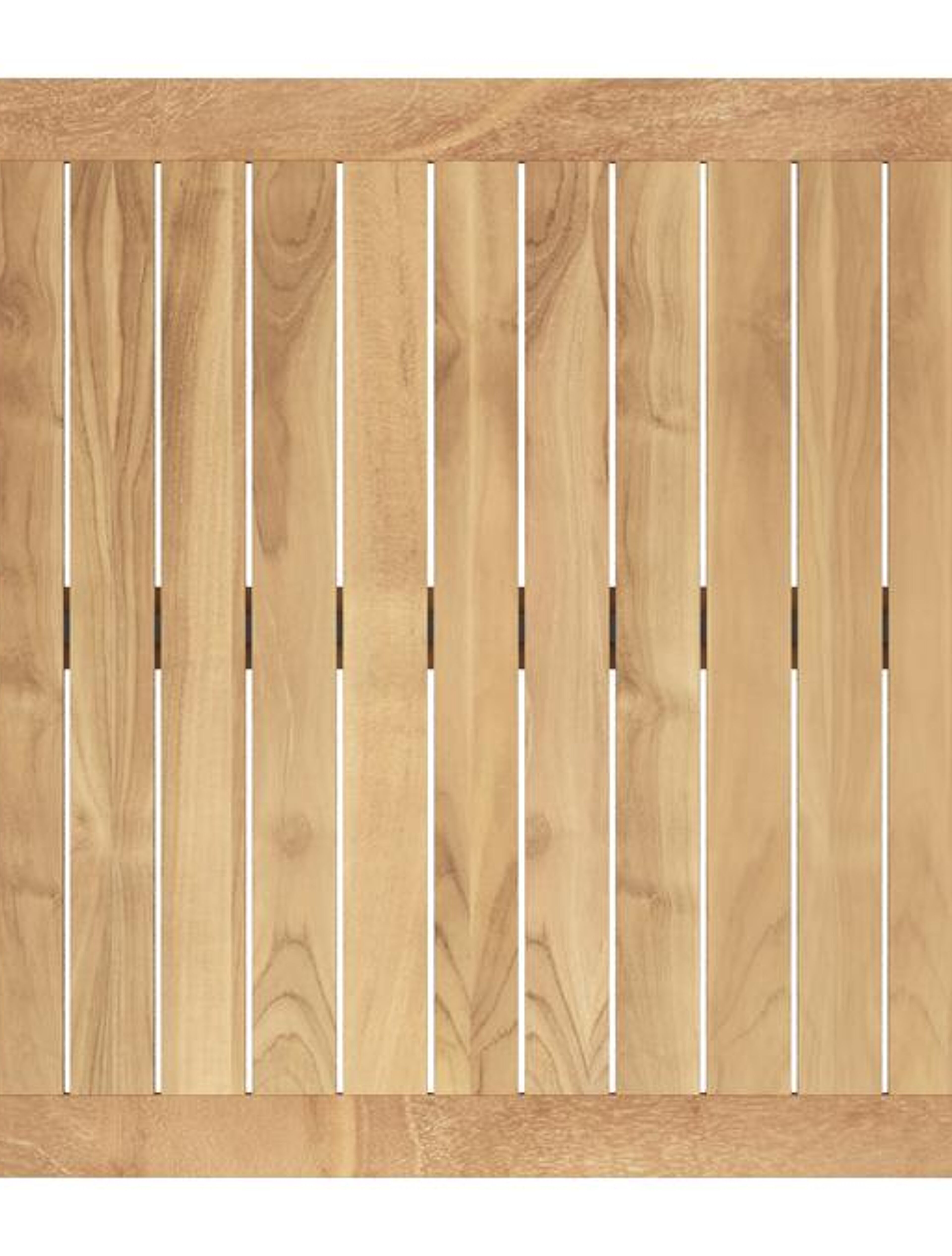 Een tafelblad uit teak staat gelijk aan bijzondere kwaliteit en natuurlijk design. Teak is een kwalitatieve houtsoort gekenmerkt door zijn hardheid. Aangezien hout leeft, kan de structuur of kleur licht anders zijn dan op het beeld weergegeven.