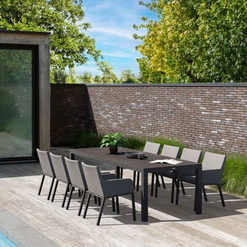 De Varese tuinset heeft een minimalistisch design dat perfect past binnen elke omgeving. De tafel heeft een fijne afwerking en een breder tafelblad, waardoor je geniet van een extra zitplek aan de kopse kanten.