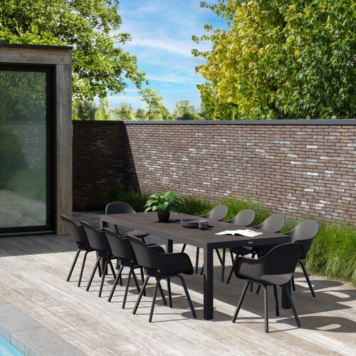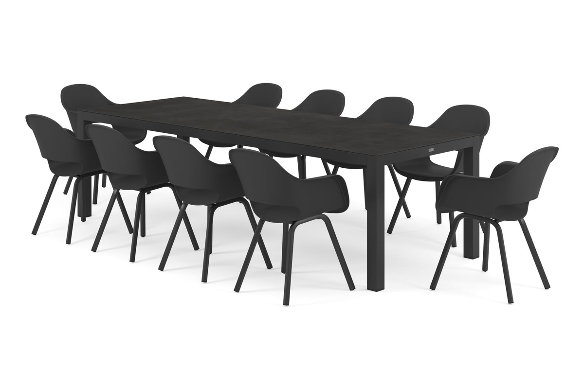 Varese tuinset in zwart aluminium en zwart volkeramiek tafelblad met 10 Artena tuinstoelen | Exterioo