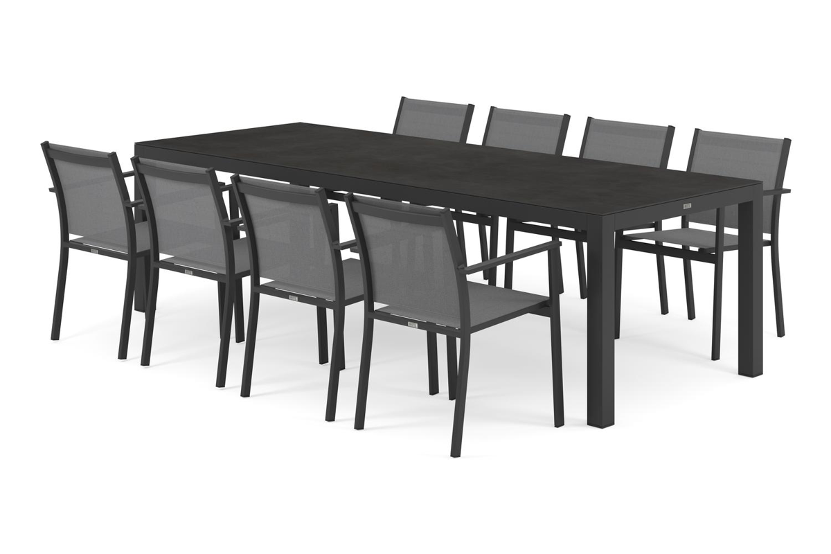 De Varese tuinset heeft een minimalistisch design dat perfect past binnen elke omgeving. De tafel heeft een fijne afwerking en een breder tafelblad, waardoor je geniet van een extra zitplek aan de kopse kanten.