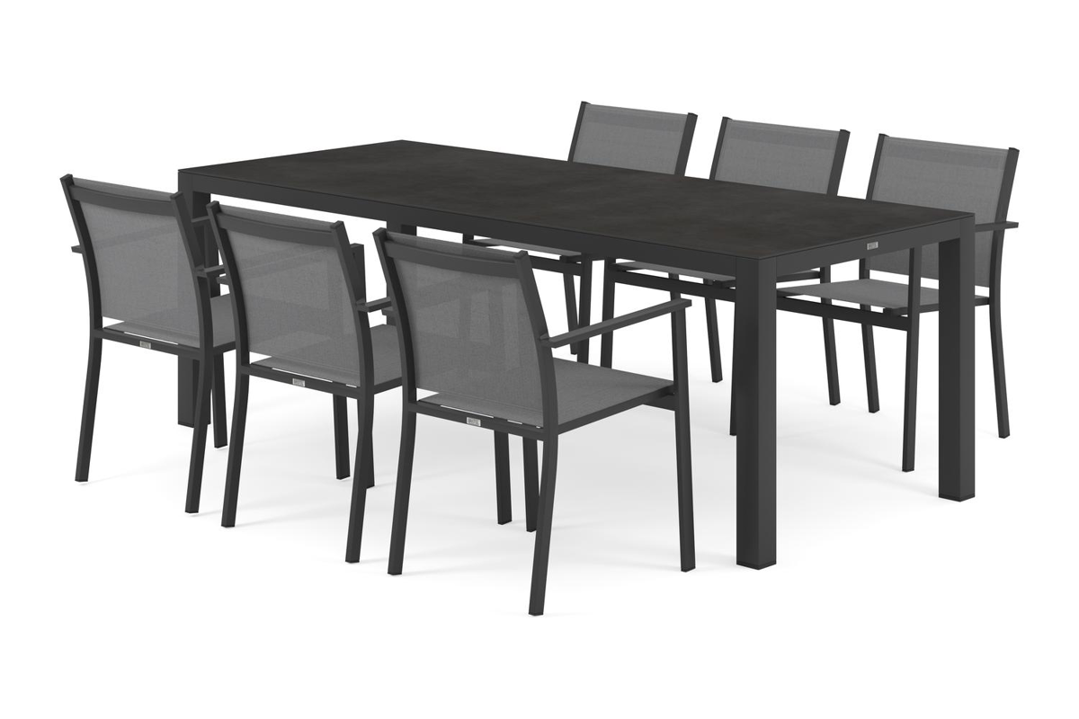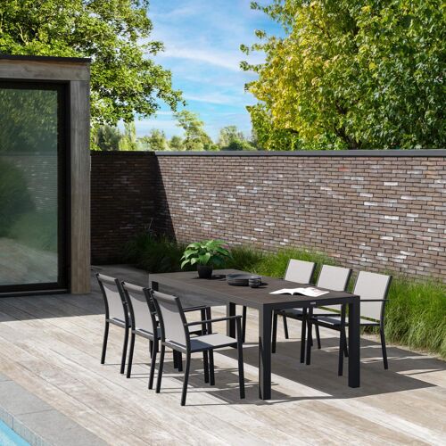 De Varese tuinset heeft een minimalistisch design dat perfect past binnen elke omgeving. De tafel heeft een fijne afwerking en een breder tafelblad, waardoor je geniet van een extra zitplek aan de kopse kanten.